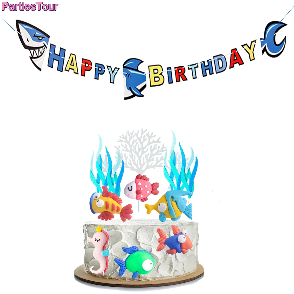 Тематика океана торт Топпер Мультфильм морская рыба торт Декор Акула вечерние баннеры детский душ дети под морем День Рождения вечерние украшения