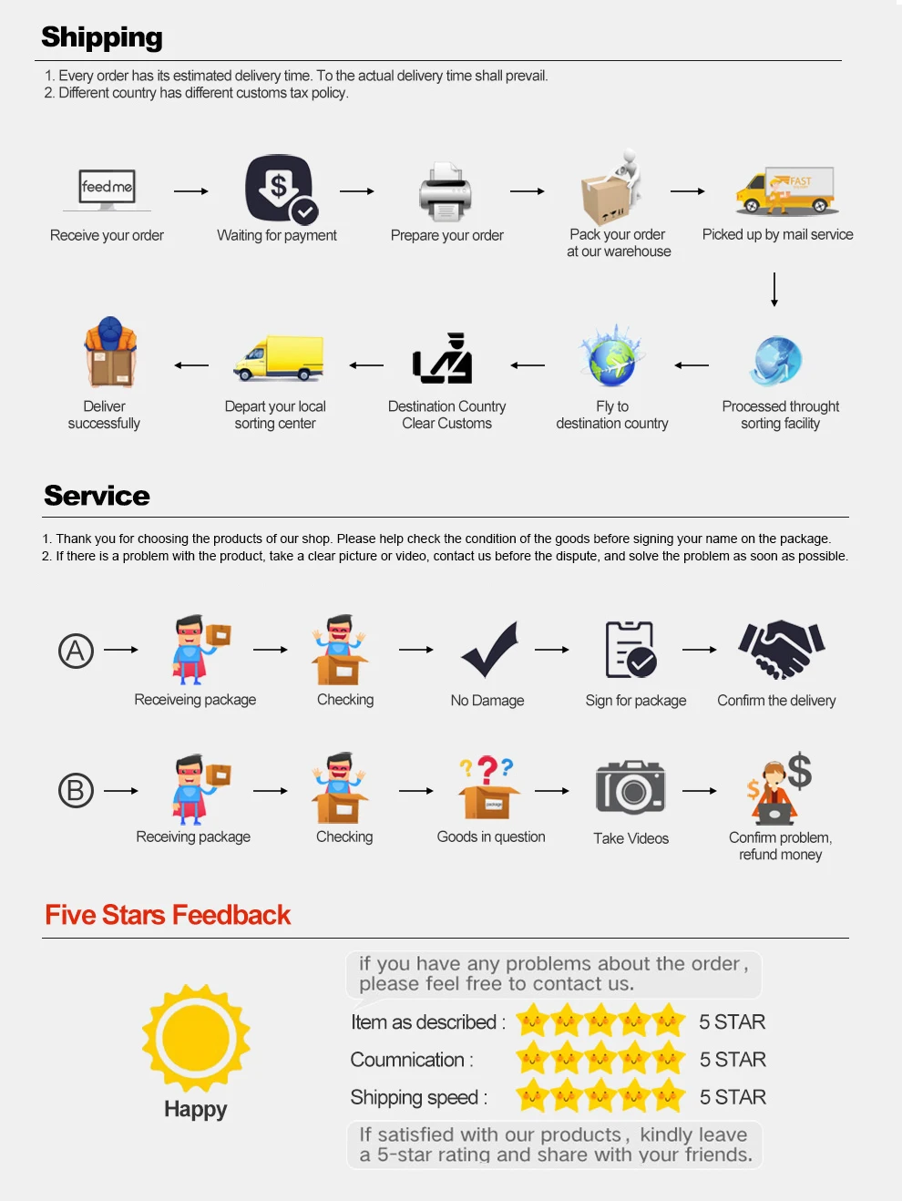 If you are satisfied with our products, please leave a 5-star review.