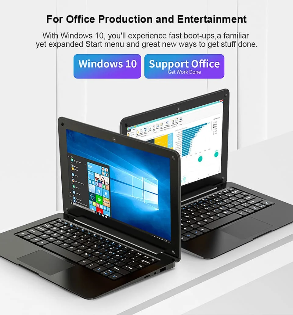 This laptop is equipped with high-speed Intel Celeron N3350 CPU,maximum frequency 1.10GHz-2. 40GHz, it can help you to handle office work, online video meeting, online learning and web browsing easily.