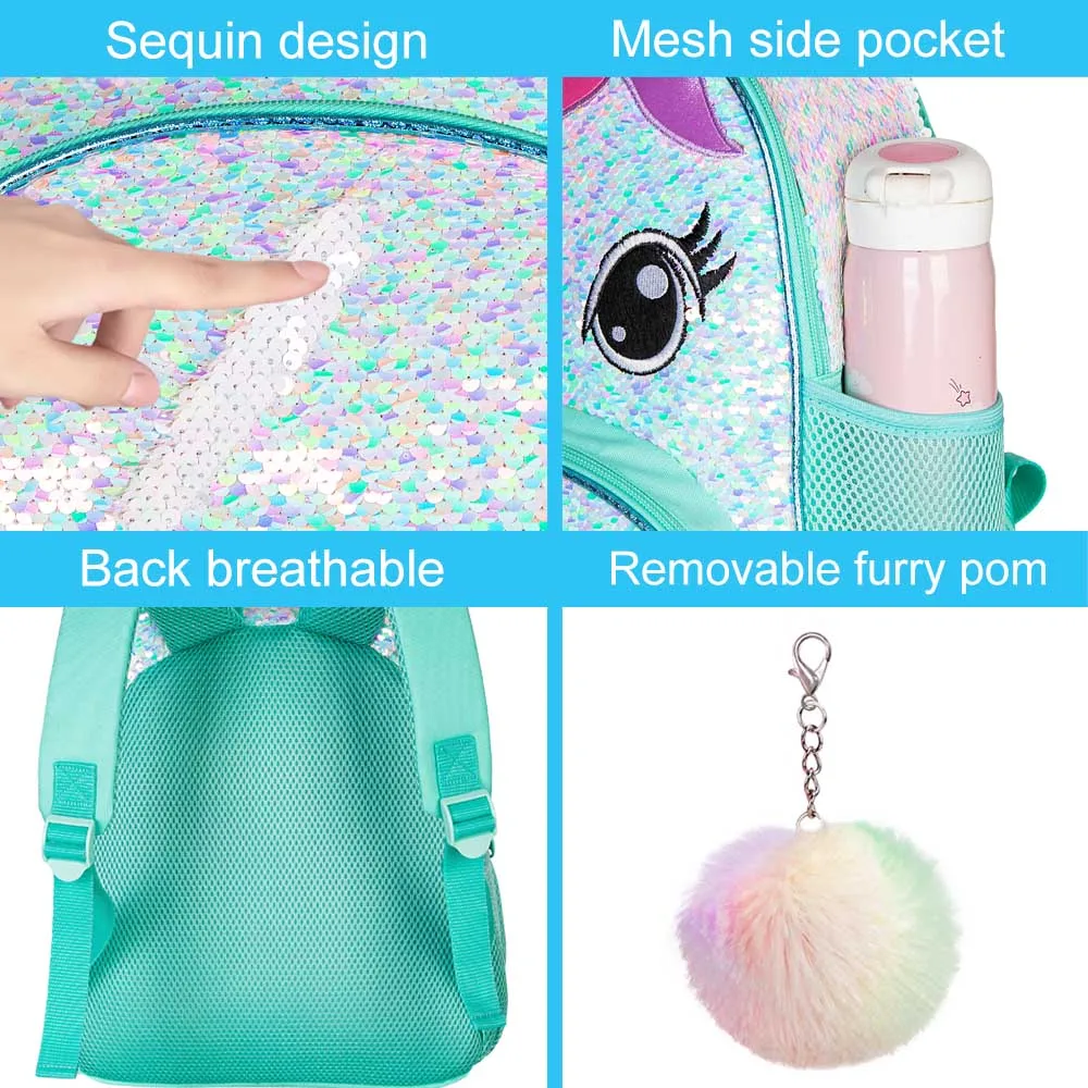 Привлекательный блесток рюкзак дизайн: Детский рюкзак с передним карманом изготовлен Реверсивный материал с пайетками, сверкающие, красочный и притягивающий взгляд. Мы считаем, что вашему ребенку понравится!