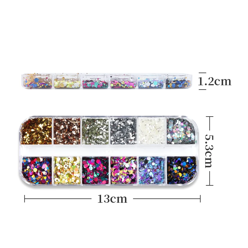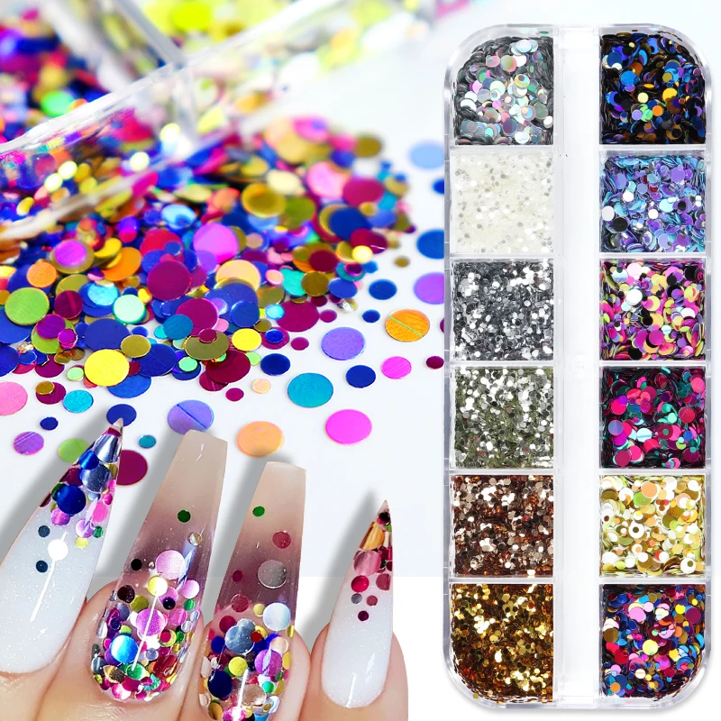 12 сеток смешанные размеры круглые Блестки для нейл Арта (искусство украшения ногтей) набор лазерных кругов ультратонкий с блестками хлопья украшения DIY аксессуары для ногтей