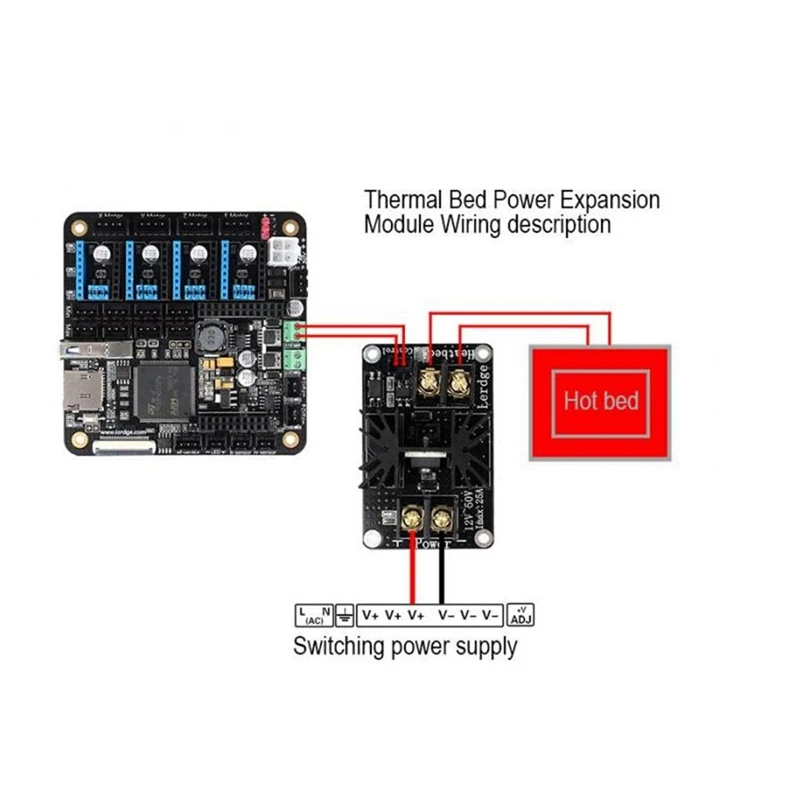 Максимальный ток 25A: Этот модуль высокой мощности помогает 3d-принтерам, оснащенным платами контроллера lerdge, стать более мощными. Этот модуль может решить проблему текущей нагрузки, когда мощность горячей кровати слишком велика. С помощью этого дополнительного модуля максимальный ток на плате может составлять до 25А.