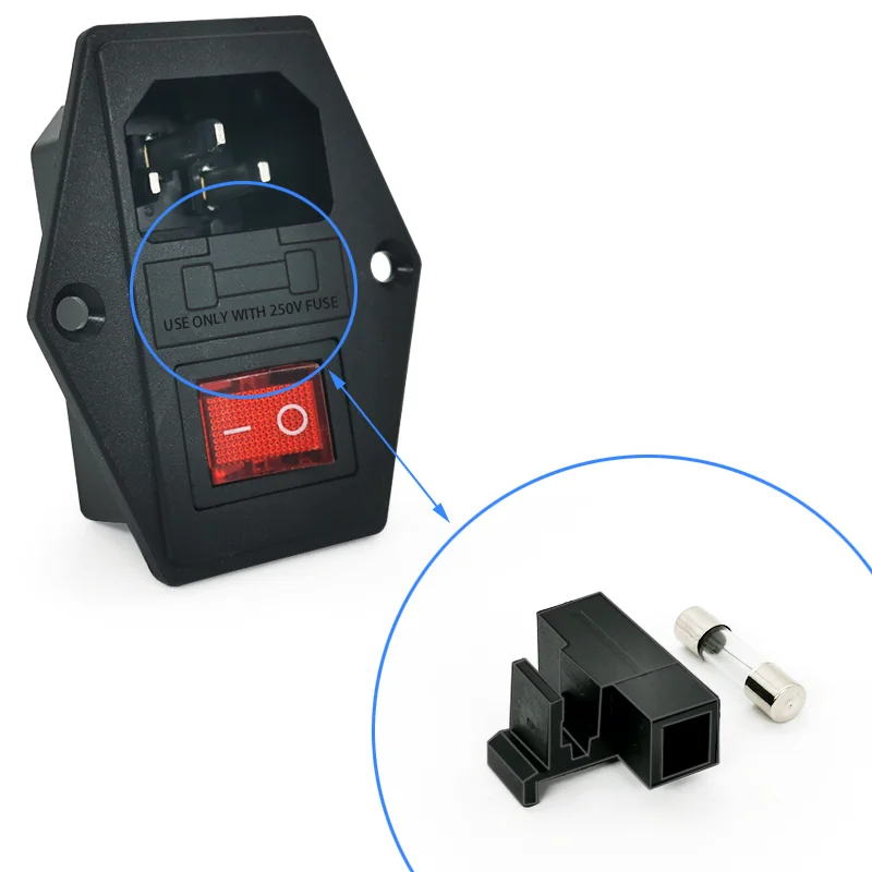 PANEL MOUNT SOCKET WITH FUSE HOLDER AND SWITCH