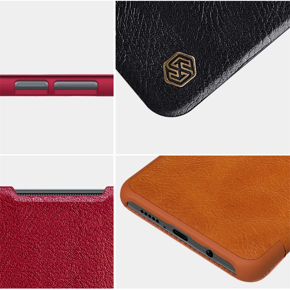 Кожаный чехол Nillkin Qin изготовлен из высококачественной кожи с матовой текстурой. Хорошо выглядит и на ощупь. Мягкая подкладка обеспечивает надежную защиту экрана, защиту от скольжения и грязи. Чехол с откидной крышкой, полное покрытие. Модный и полезный. Дизайн слота внутри для удобного размещения карты.