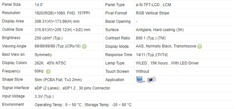 Эта ссылка является14 дюймов Тонкий светодиодный без кронштейны. 1920X1080 30 контактовПожалуйста, внимательно проверьте