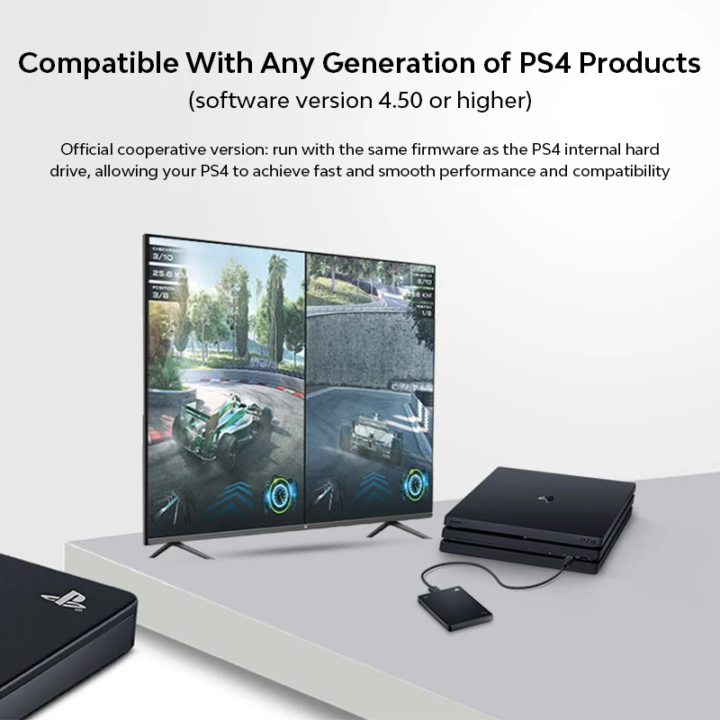 Работает на той же прошивке, что и внутренний жесткий диск PS4, позволяя вашей консоли PS4 достичь быстрой и гладкой производительности и совместимости с любым поколением продуктов PS4 (версия программного обеспечения 4,50 или выше)