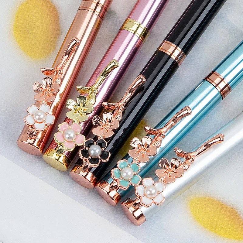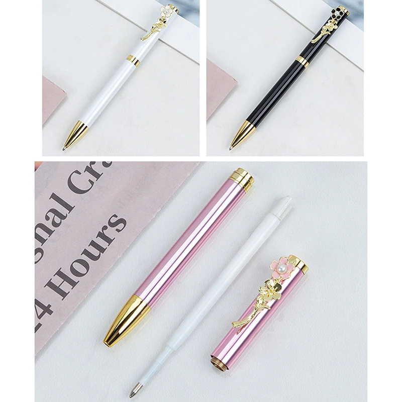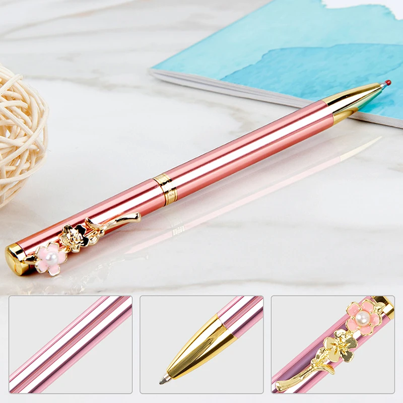 Розовая ручка с цветком вишни, металлическая шариковая ручка с розовым цветком, милая вращающаяся шариковая ручка