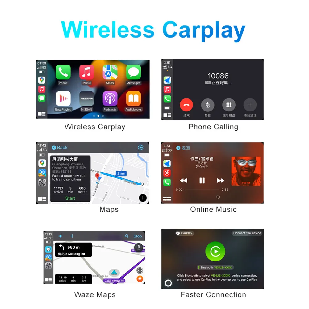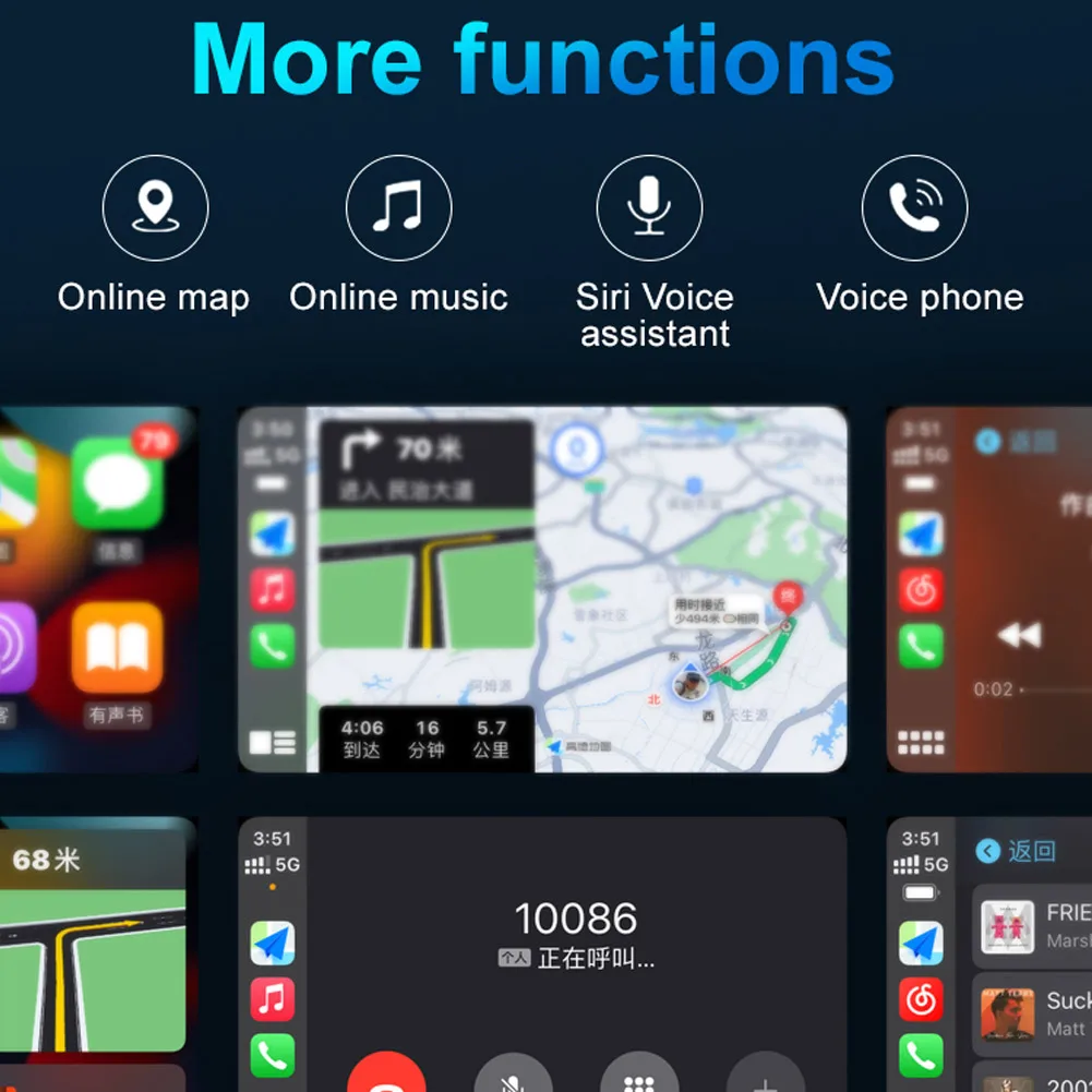 * Голосовая логика: такая же, как оригинальная CarPlay на автомобиле. Оригинальные автомобильные радиостанции могут быть смешаны, и различные типы голоса будут разрушены.