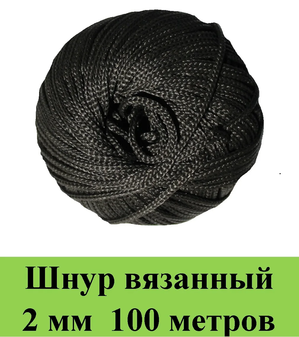 Шнур вязанный из полиэфирных нитей белый диаметр 2 мм длина 100 метров черный.
