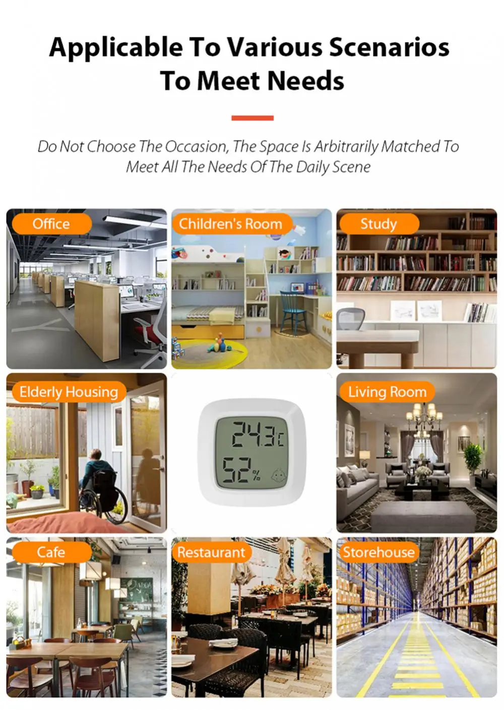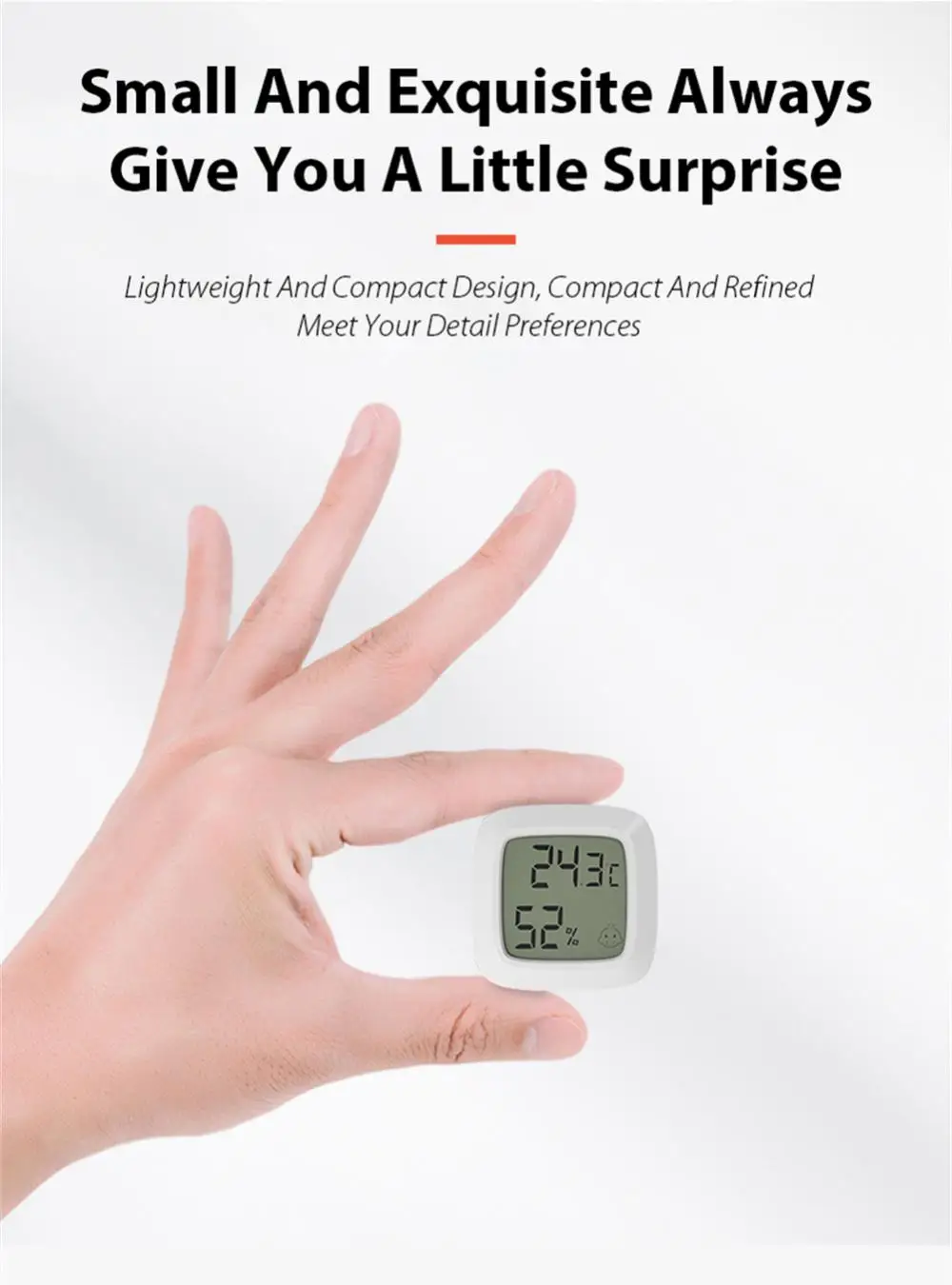 【Функциональ】этот термометр обеспечивает точные показания влажности и температуры в помещении. Эмодзи на экране указывает на комфортный уровень температуры.