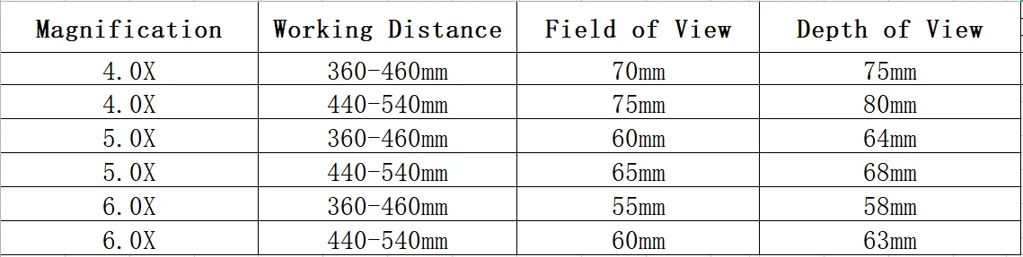 Большое поле зрения, большая глубина поля, объектив высокой четкости, подходит для тонкой работы