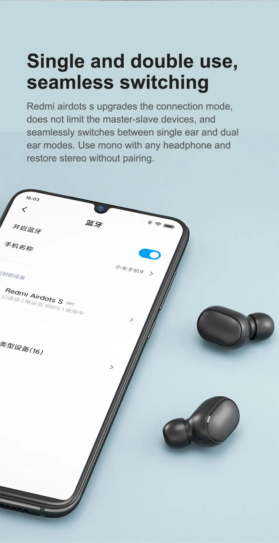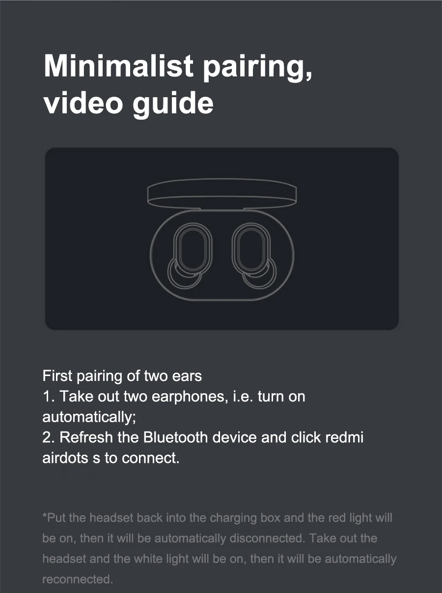 2. Обновите bluetooth-устройство телефона и нажмите Redmi Airdots S для подключения. * Поместите наушники обратно в зарядную коробку, светильник для наушников красного цвета, затем отсоедините автоматически, выньте наушники и светильник белого цвета, затем автоматически Подключите обратно.