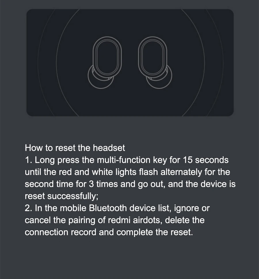 2. Игнорируйте или удаляйте Redmi AirDots S в списке устройств Bluetooth телефона, удалите запись подключения и завершите сброс.
