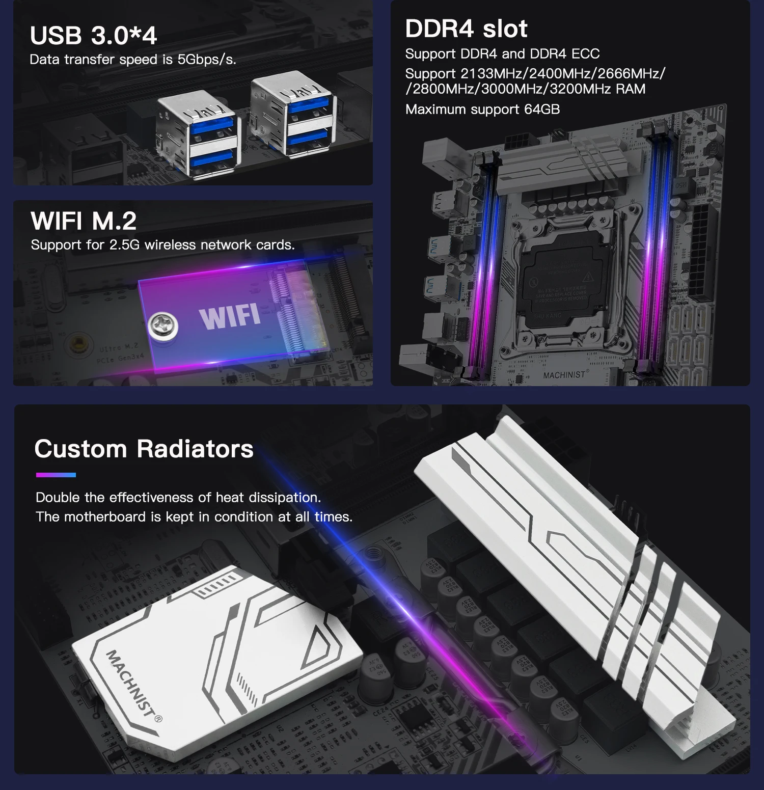 > Основные продукты: MACHINIST X99 K9 материнская плата * 1, (используется) E5 2666 V3 CPU * 1, DDR4 2шт * 16 Гб 2133 МГц RAM.