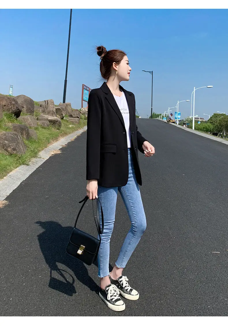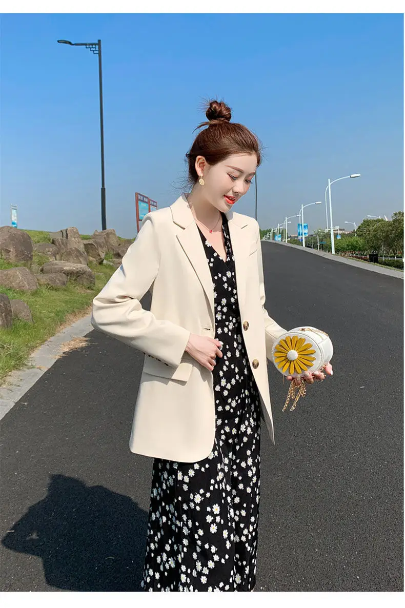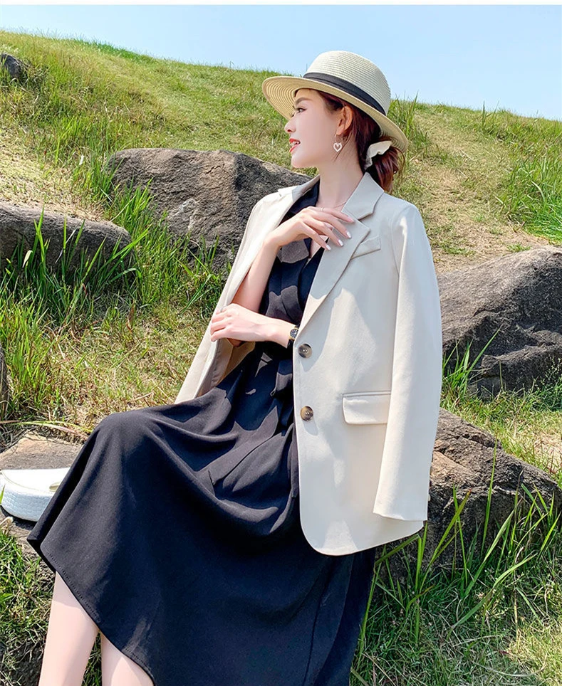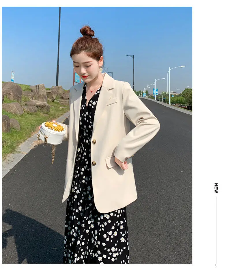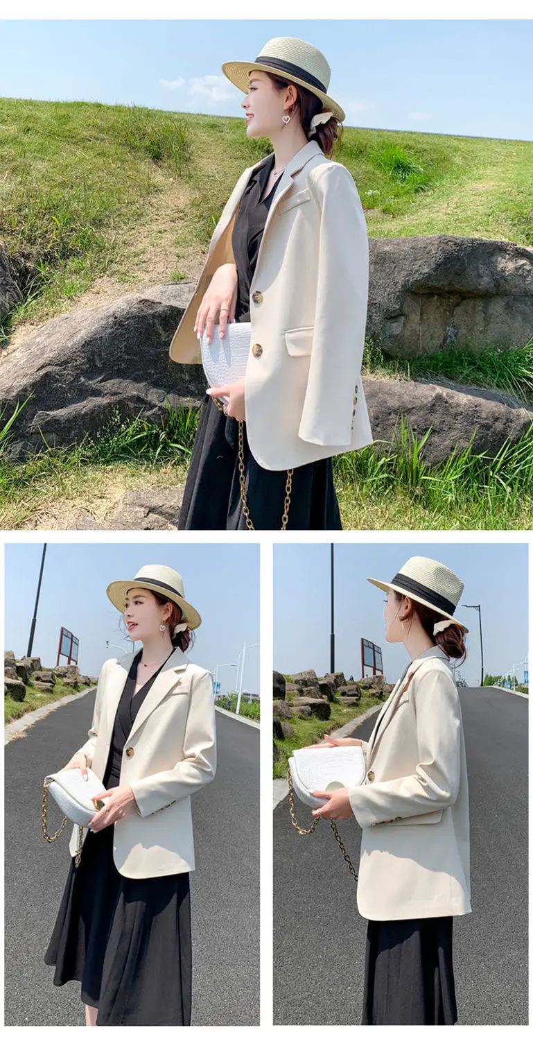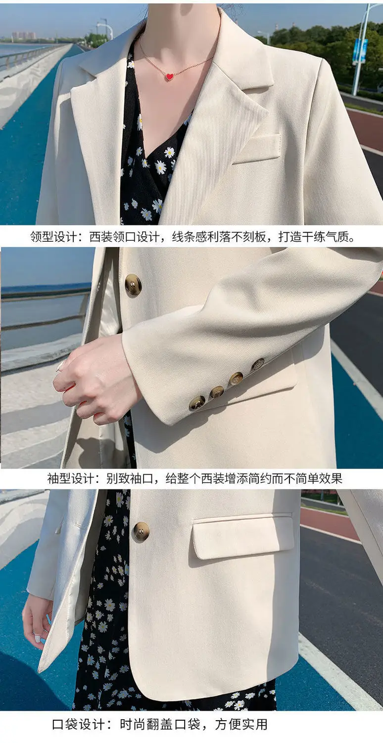 Женский двубортный Блейзер [EWQ] Белый свободный блейзер с отложным воротником и