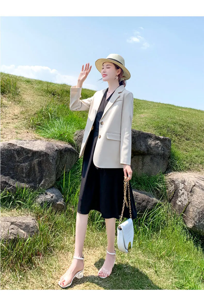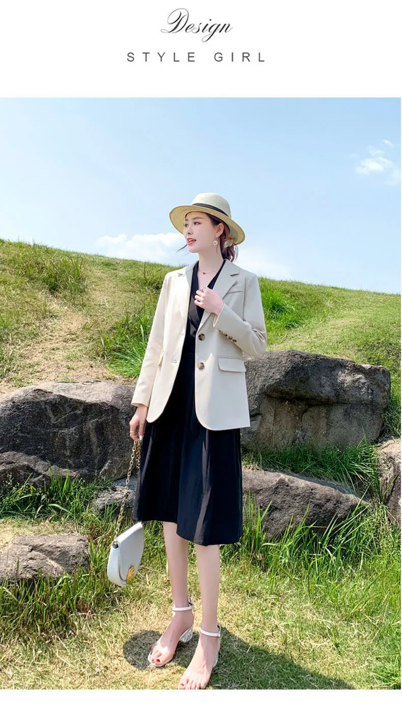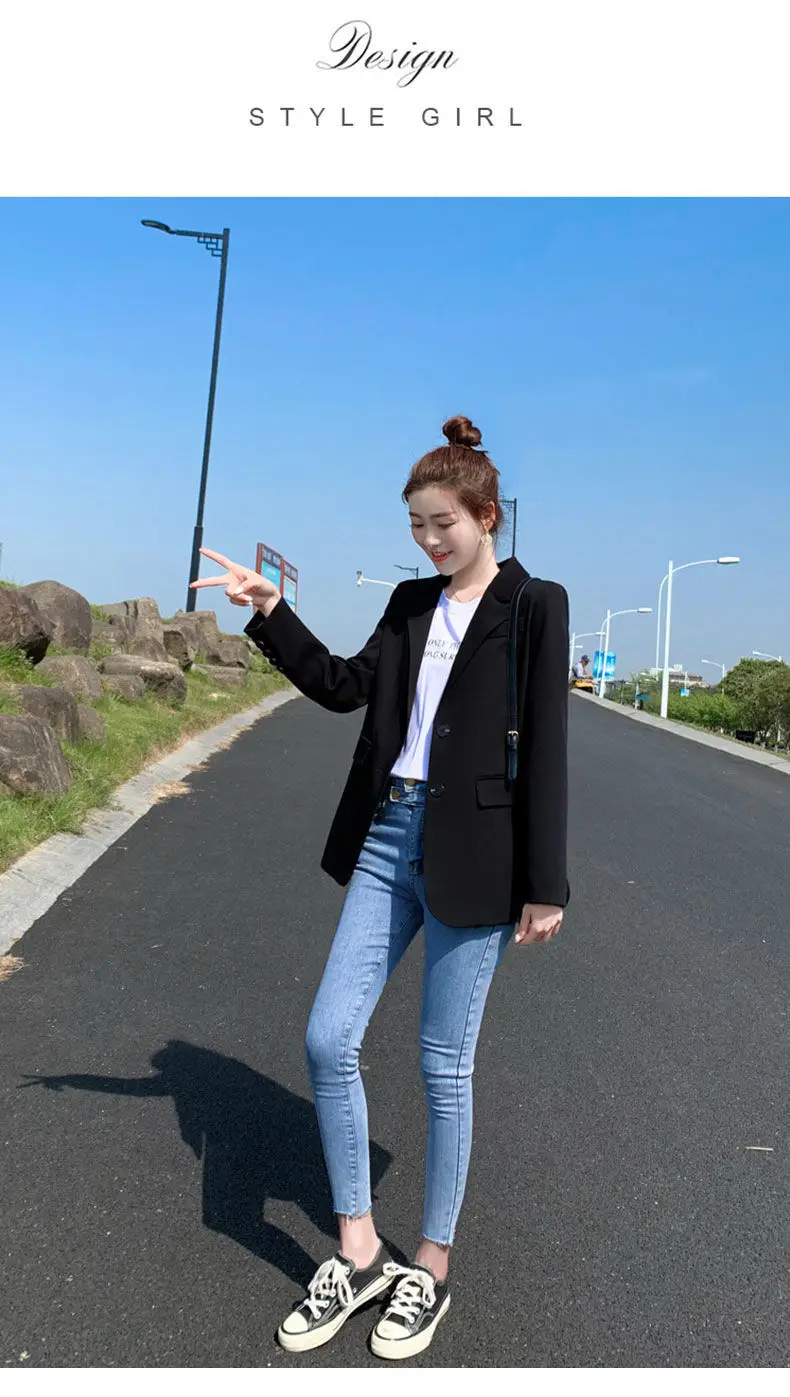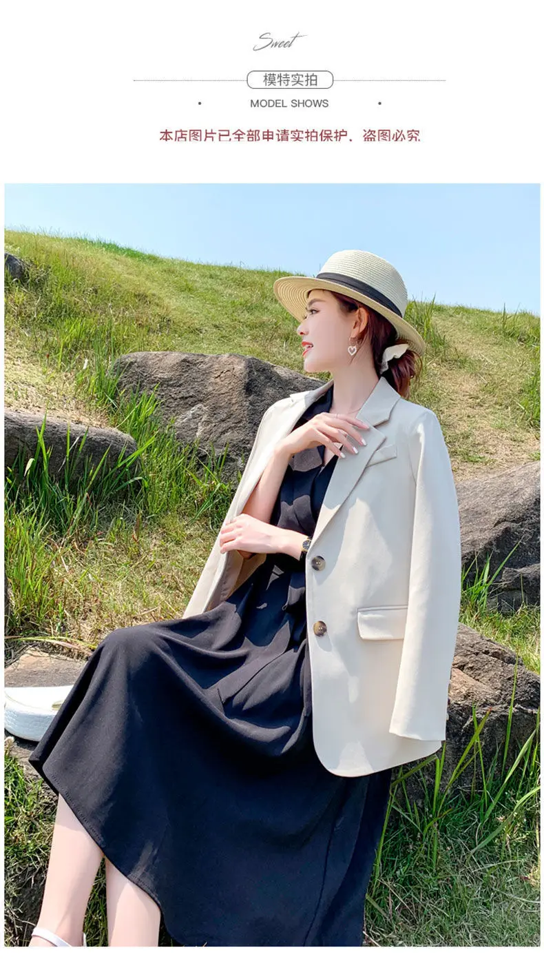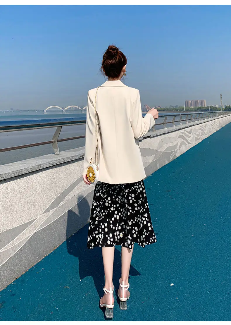 Женский двубортный Блейзер [EWQ] Белый свободный блейзер с отложным воротником и