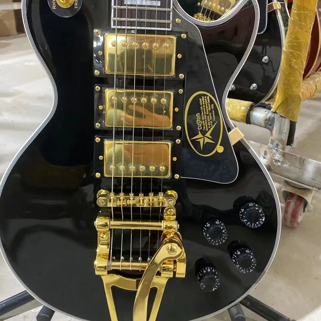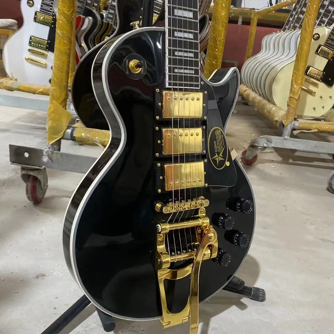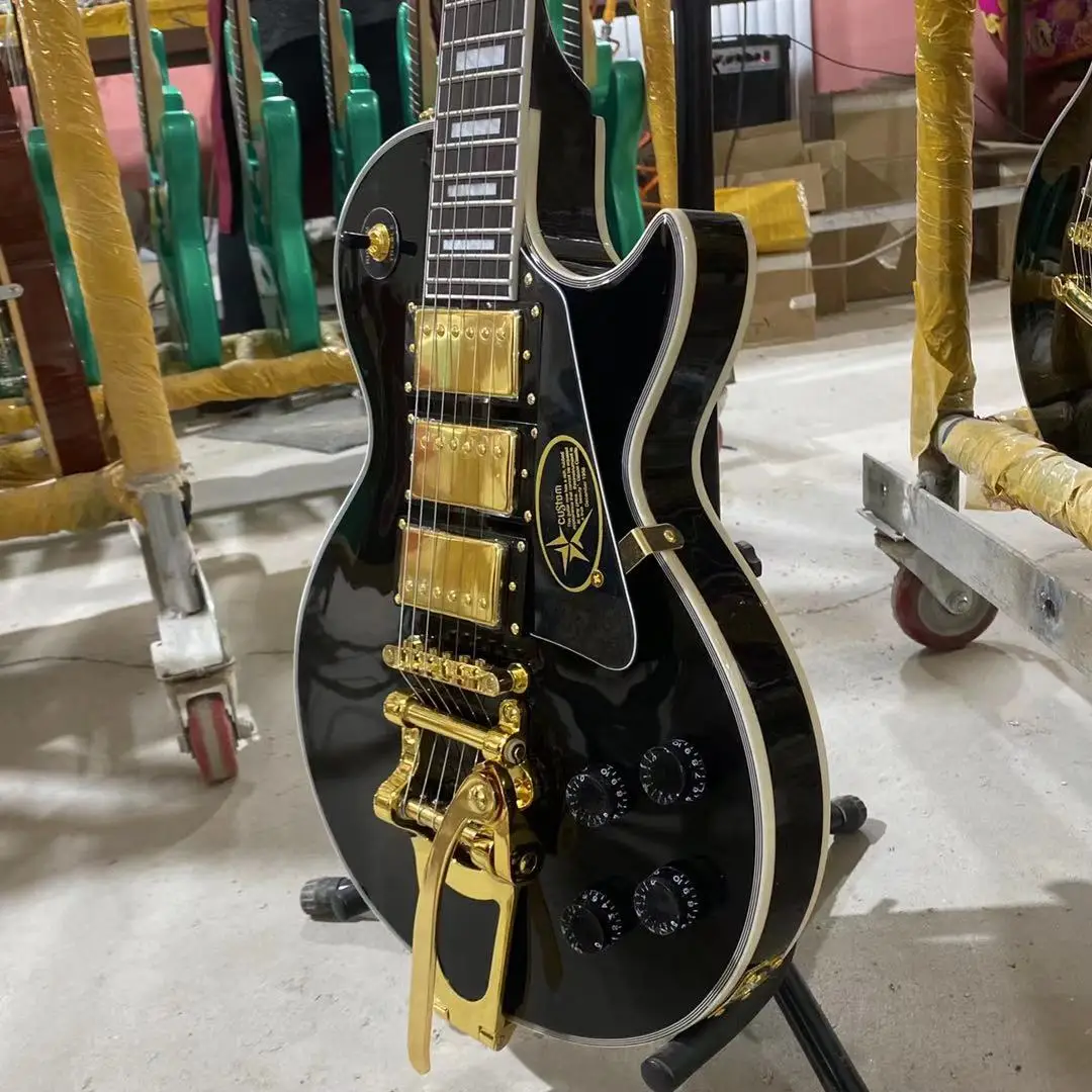 На заказ электрическая гитара черного цвета корпус из красного дерева палисандр гриф 3 пикапа с бигсби Золотое оборудование Бесплатная доставка