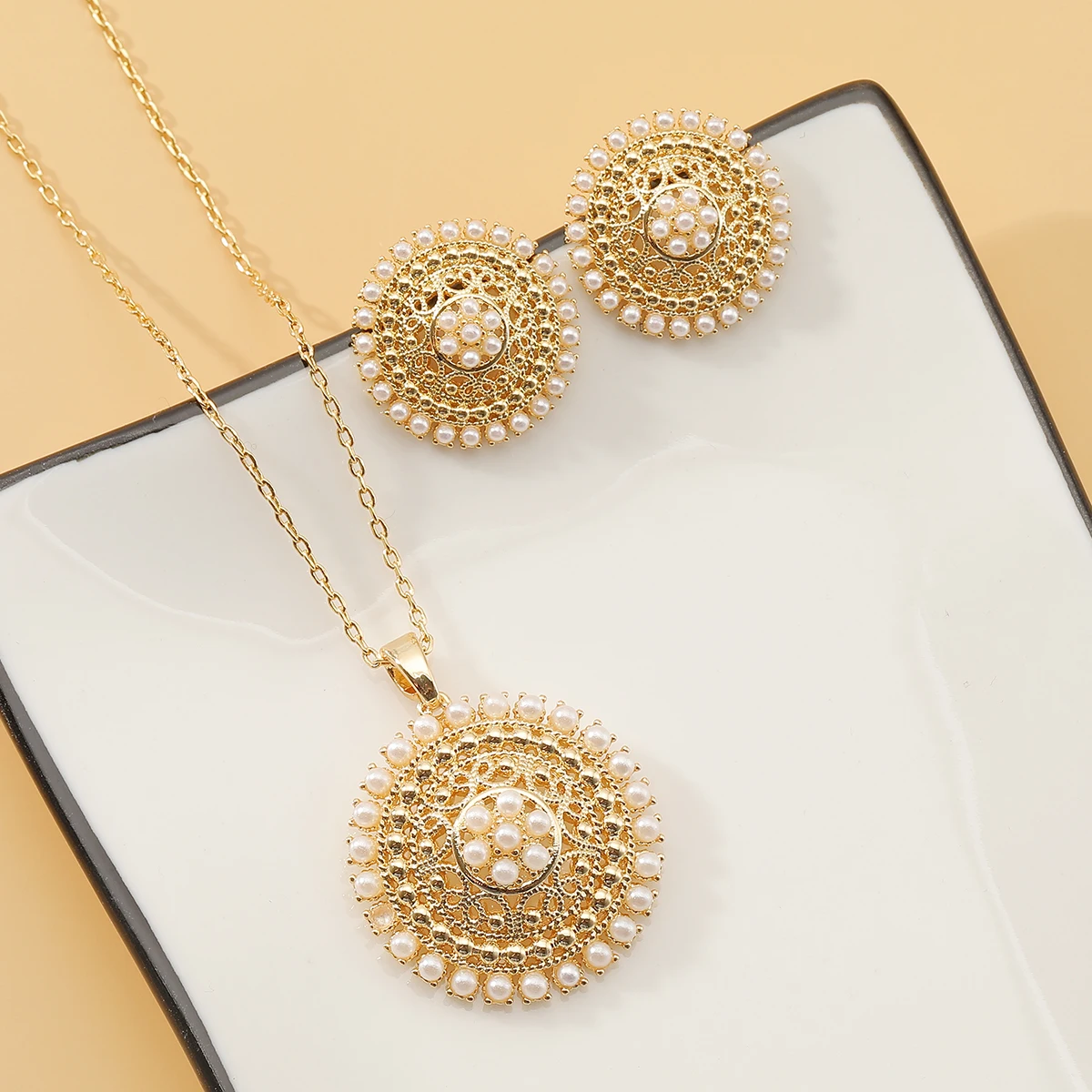 Новинка 2022, Римский женский модный Перал, ожерелье и серьги, набор, Круглый, простой, арабский стиль, золотой Ювелирный Набор для вечерние, свадьбы