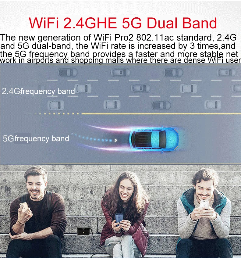 Новое поколение стандарта Wi-Fi Pro2 802.11ac, 2.4Gand 5G двухдиапазонный, скорость WiFi увеличивается в 3 раза, а частота 5G, полоса обеспечивает более быструю и стабильную сеть в airpdrts и торговых центрах, где есть плотный WiFi пользователь