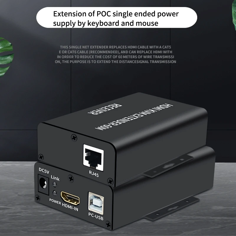 3. С этим удлинителем расстояние передачи может быть до 60 метров при использовании кабелей CAT-5e/6, для универсальных кабелей, совместимых с HDMI, они должны быть настроены, когда длина превышает 10 метров.