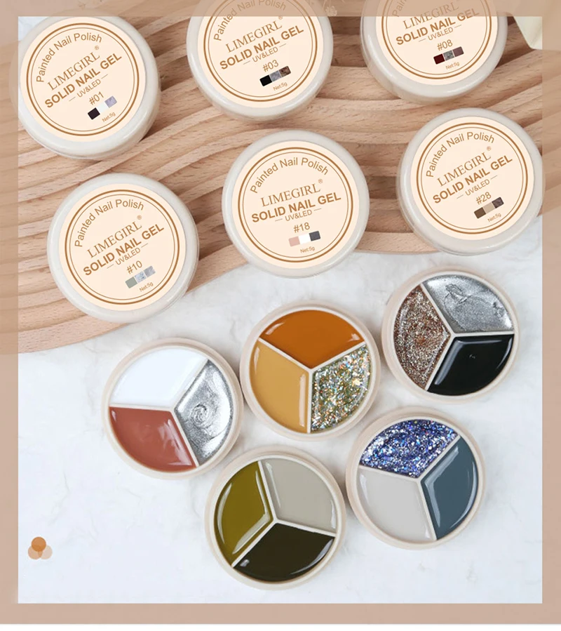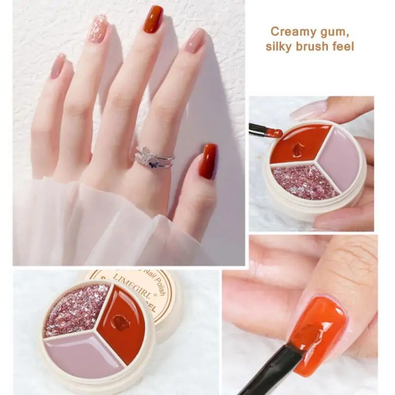 Один из трех цветов, перевернутый вверх дном, без клея, легко носить с собой, не легко смешивать цвета, в основном может удовлетворить ваши потребности в цветах ногтей.