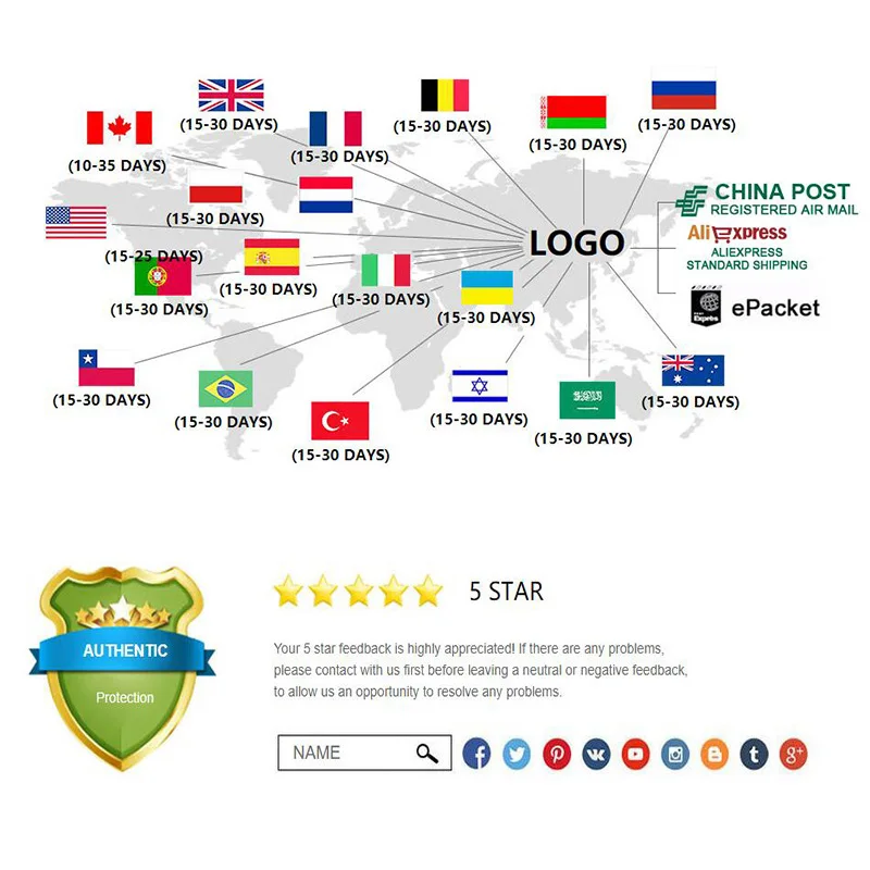 4. Обратите внимание, что покупатели несут ответственность за все дополнительные таможенные сборы, брокерские сборы, пошлины и налоги на импорт в вашу страну. Эти дополнительные сборы могут быть собраны во время доставки. Мы не вернем стоимость доставки за отказ от поставок. Стоимость доставки не включает налоги на импорт, и покупатели несут ответственность за таможенные пошлины.