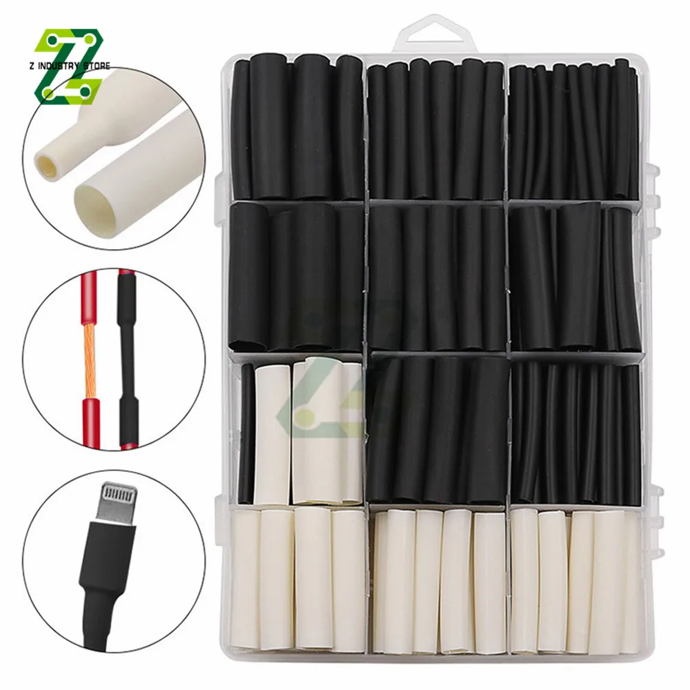 Набор термоусадочных трубок с двумя стенками черного и белого цвета, 320 шт.