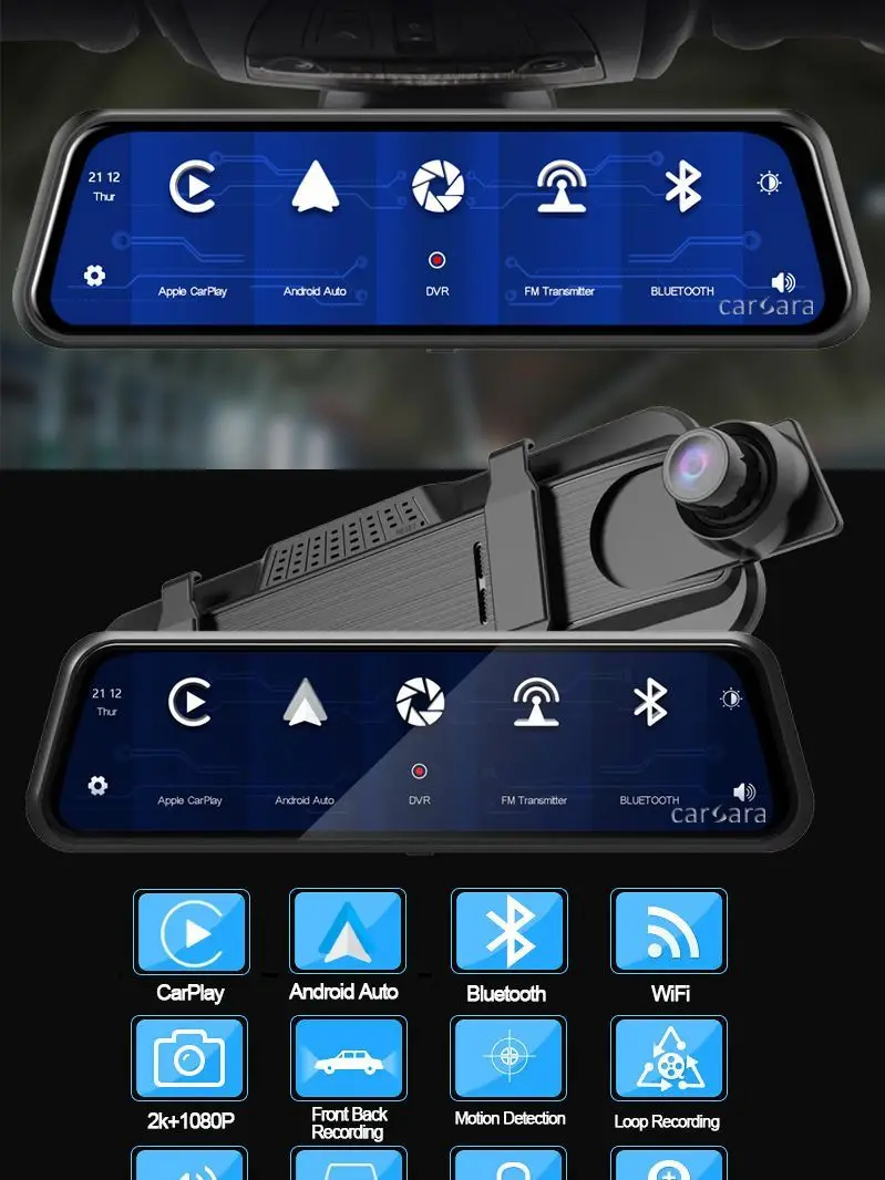Автомобильный видеорегистратор зеркало заднего вида видеорегистратор с парковочным монитором Поддержка беспроводной Androidauto Авто черная коробка задняя камера 9,66 дюймов GPS зеркала