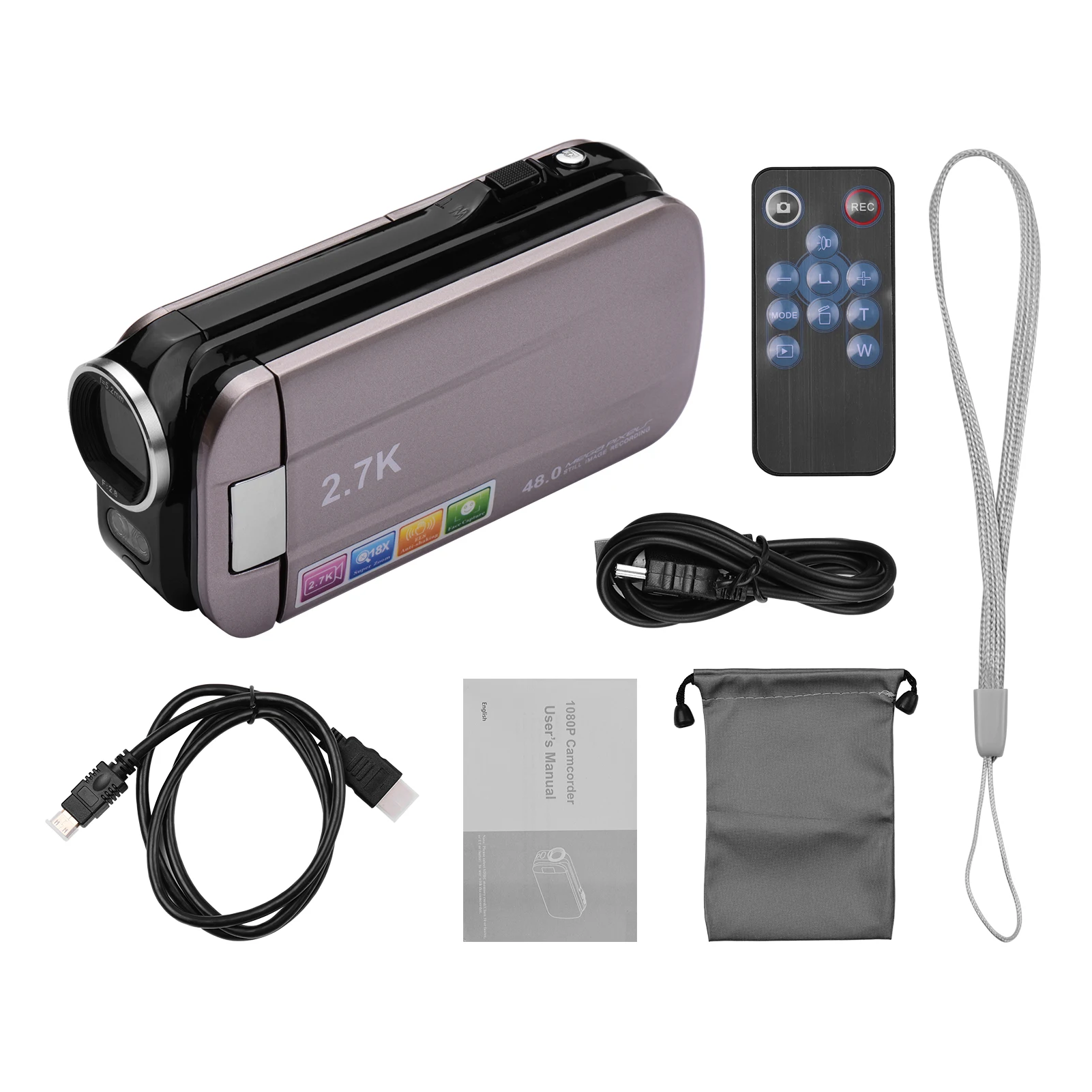 2,7 K Цифровая видеокамера:Принимает датчик изображения CMOS, поддерживает разрешение видео max. 2.7k ultra HD и разрешение 48MP (интерполяция) Супер четкое разрешение изображения и 18X цифровой зум, вы можете использовать этот DV захват прекрасный момент в любое время в любом месте.