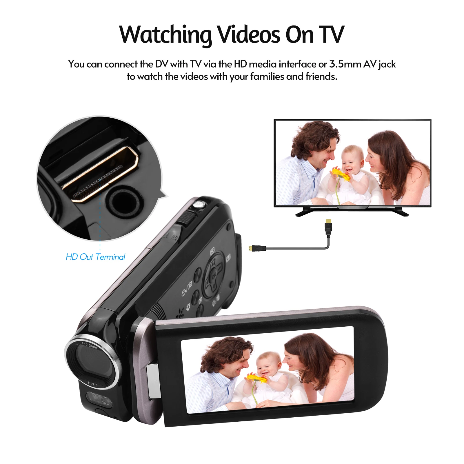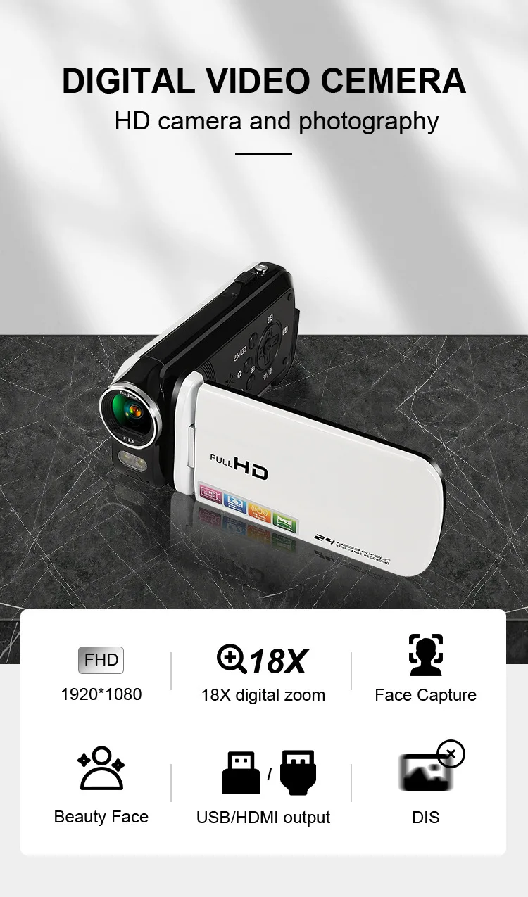 1080P Цифровая видеокамера:Принимает датчик изображения CMOS, поддерживает разрешение видео full HD max.1080P и 24MP (интерполяция) Супер четкое разрешение изображения и 18X цифровой зум, вы можете использовать этот DV захват прекрасный момент в любое время в любом месте.