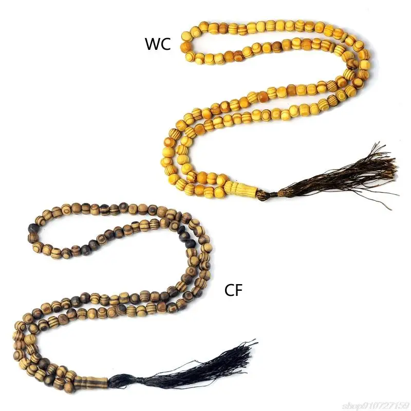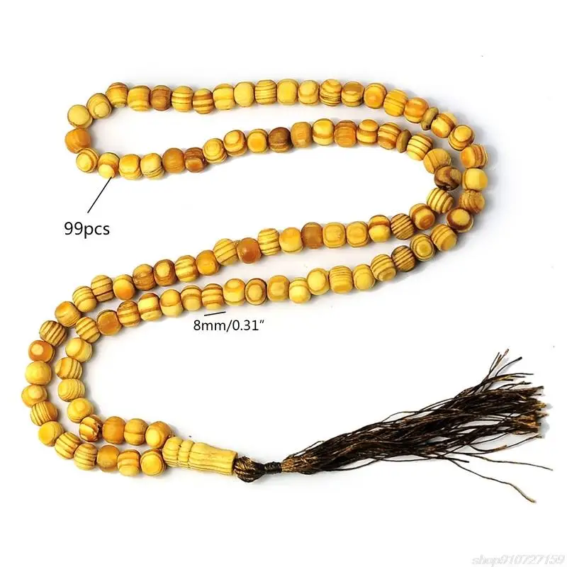Tasbih 99 бусин, деревянная бусина, мусульманский браслет Misbaha, молитва Рамадана, бусы, подарок для ИД, Исламская цепочка, 8 мм, четки, продукт