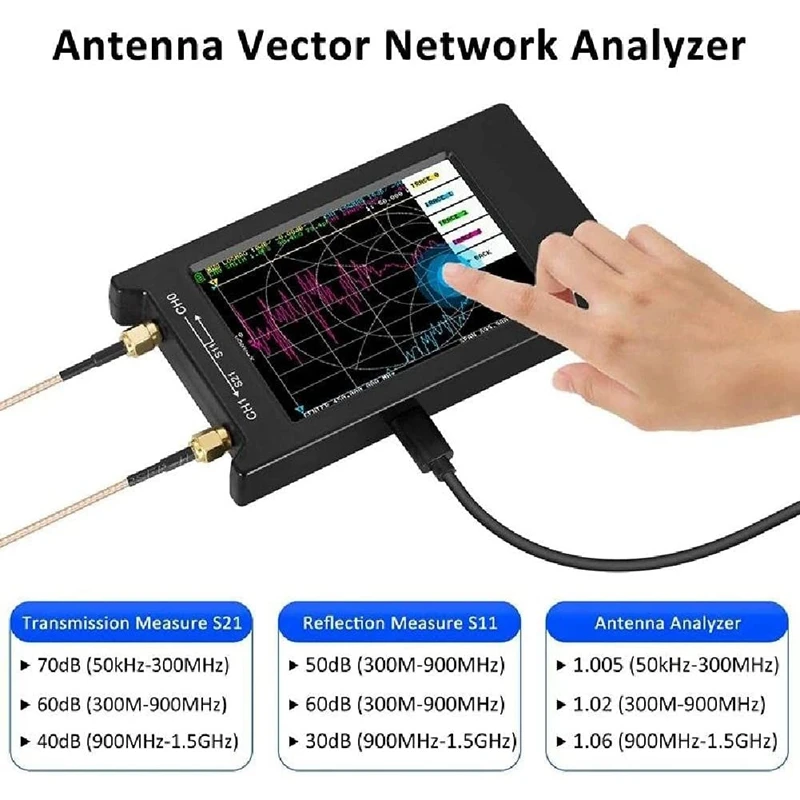 Этот NanoVNA-H4 с 4 дюйма ЖК-дисплей Пресс экран, Портативный с 1950 мАч батарея rechargeabe или питаемые через USB порт. Может длиться дольше рабочего времени.
