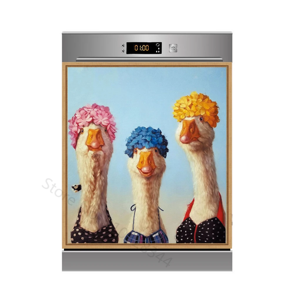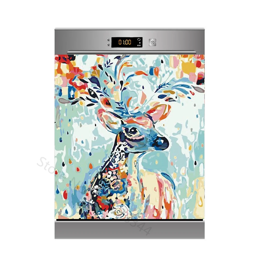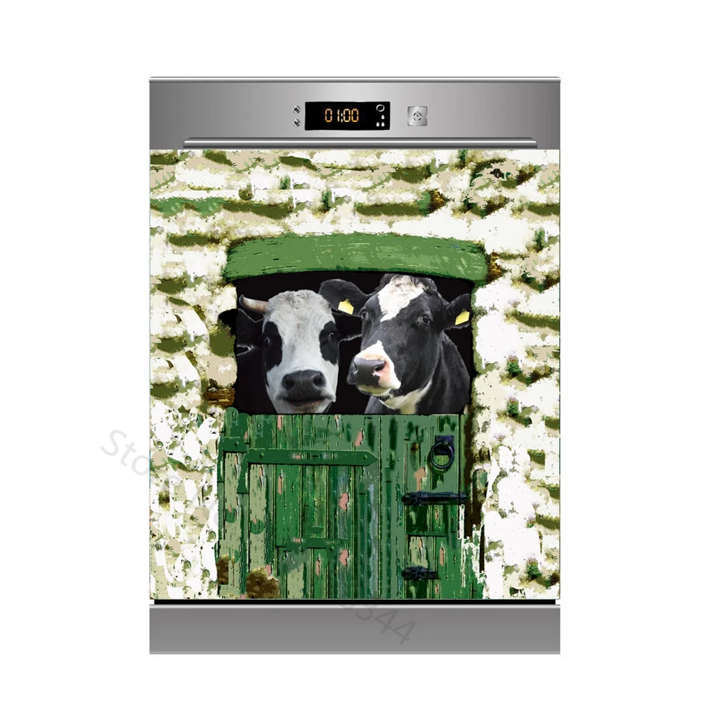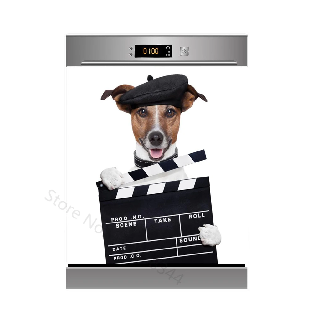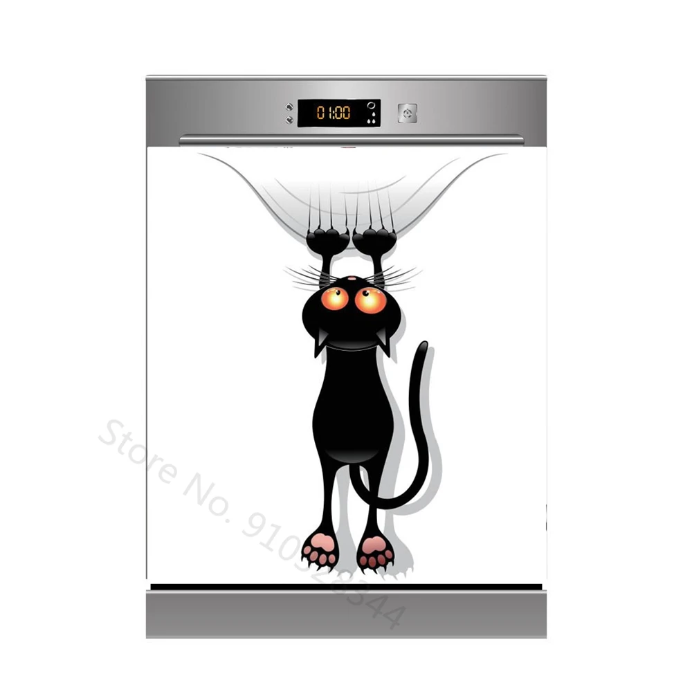 Забавная наклейка с животными на посудомоечной машине самоклеющиеся ПВХ Обои Собака кошки коровы Наклейка на стену постер индивидуальный декор двери шкафа