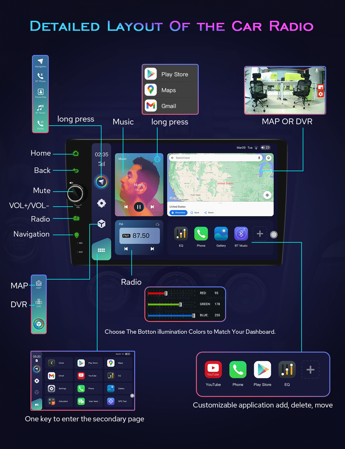 * Встроенный Android Auto & Apple Wireless Carplay.
