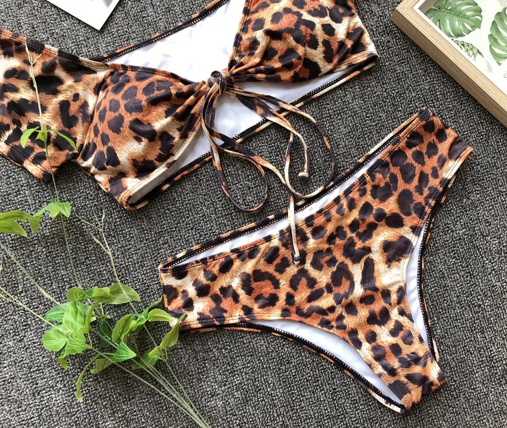 Женский раздельный бикини, летний сексуальный бандажный дешевый купальник, бикини с высокой талией, регулируемый купальник пуш-ап с леопардовым принтом