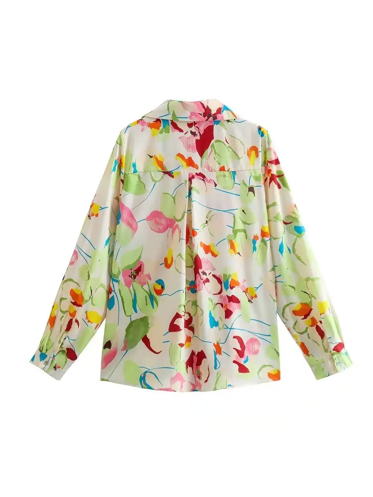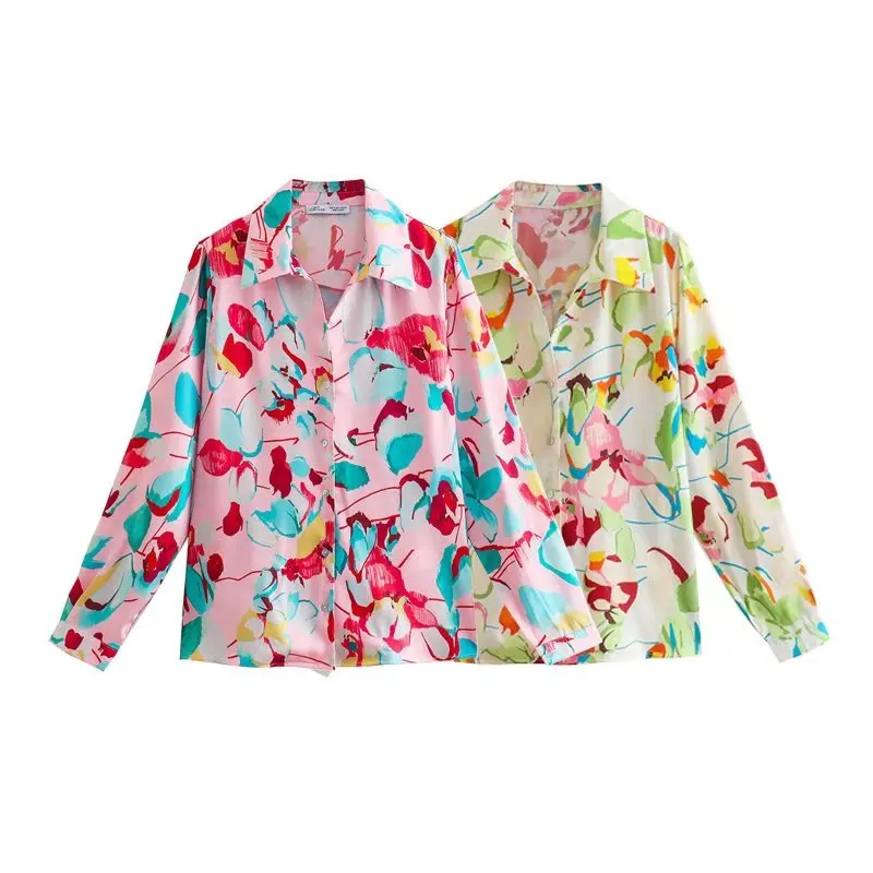 Блузка Женская Офисная с длинным рукавом и цветочным принтом на пуговицах |