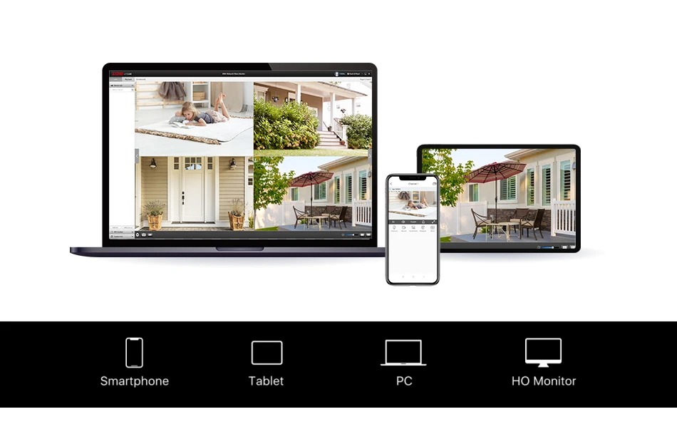 Удаленный просмотр: Загрузите приложение Zosi Smart на свой смартфон (iOS или Android) и наслаждайтесь одновременным просмотром четырех камер в приложении. Вы также можете просмотреть просмотр в режиме реального времени на компьютере через AVSS PC client.