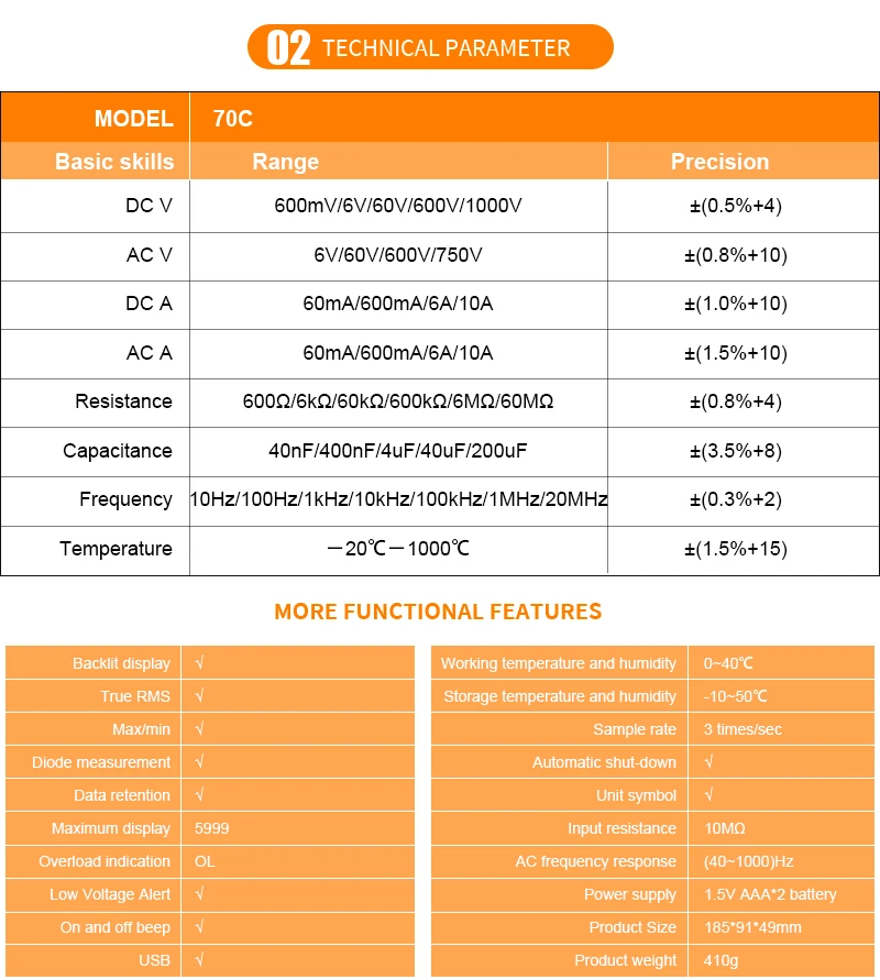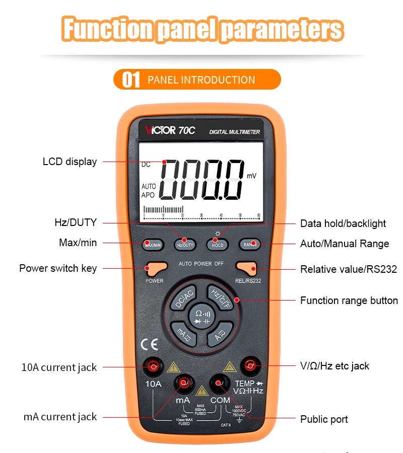 Victor 70C Digital Multimeter 6000 Counts Auto Range Meter LCD Display 20MHz Fuse 1000V Ture RMS Professional Tester Voltmeter