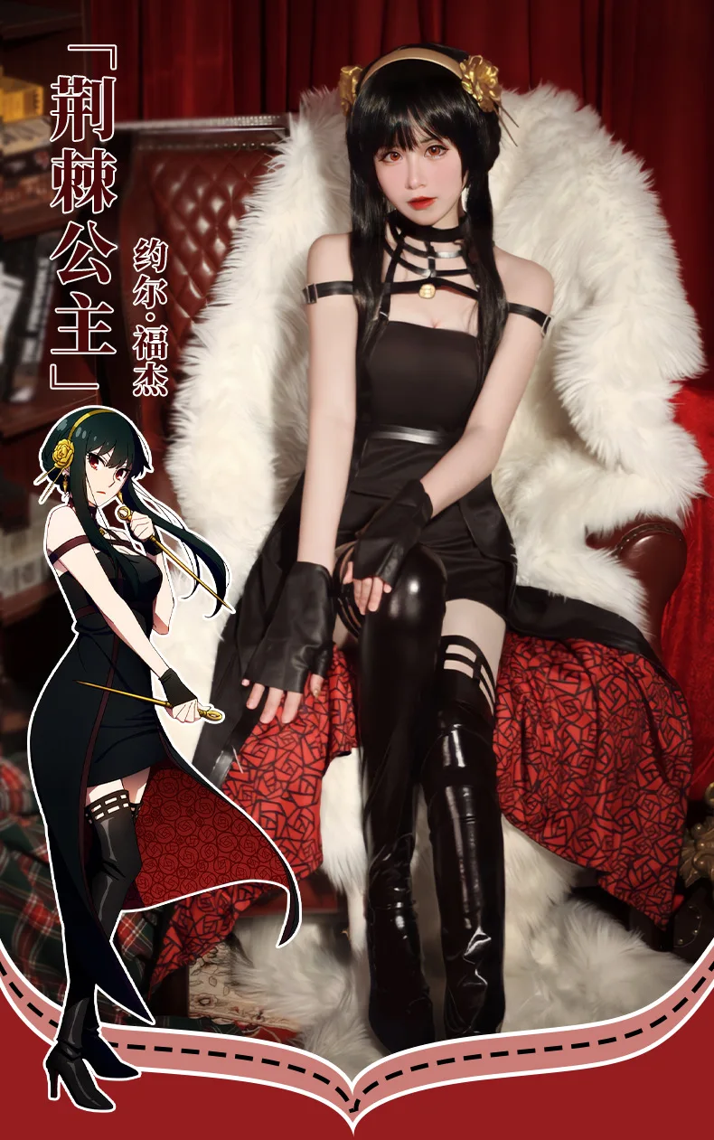 Аниме Spy X Family Yor Forger, костюм для косплея, платье, черный убийца, убийца, готический комплект с лямкой на шее, костюмы на Хэллоуин для женщин