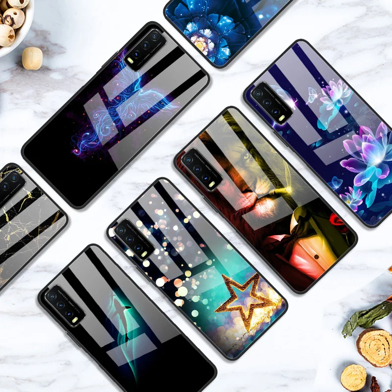 Материал: закаленное стекло + окрашенный узор + задняя крышка из поликарбоната + бампер из ТПУ (задняя крышка)