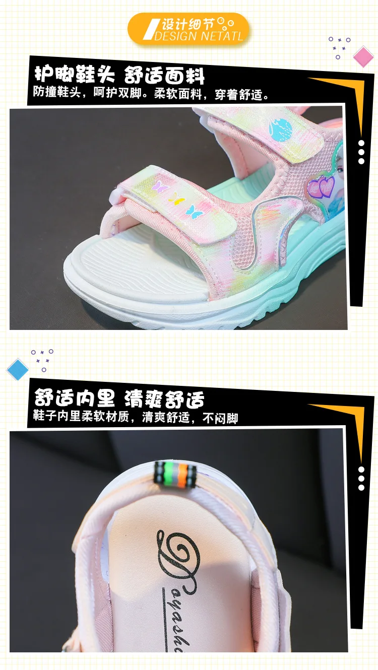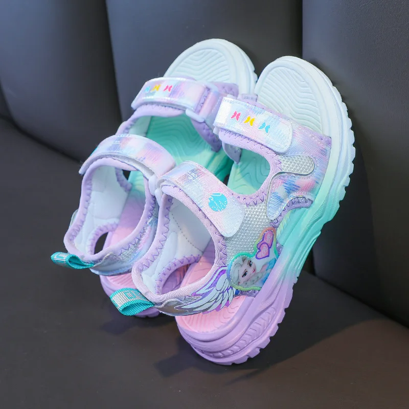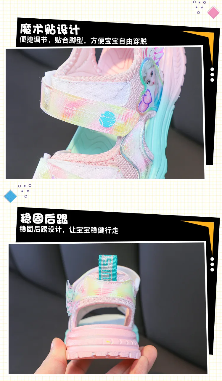 Disney/летние сандалии для девочек; Модная пляжная обувь с радужной подошвой; Детские спортивные сандалии; Повседневная летняя обувь принцессы Эльзы