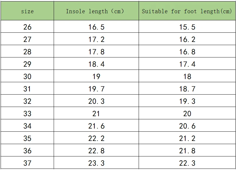 Omdat alle kinderen schoenen maat-verschil, Wanneer u de kinderschoenen, je moet volgens Onze grootte en interne lengte.