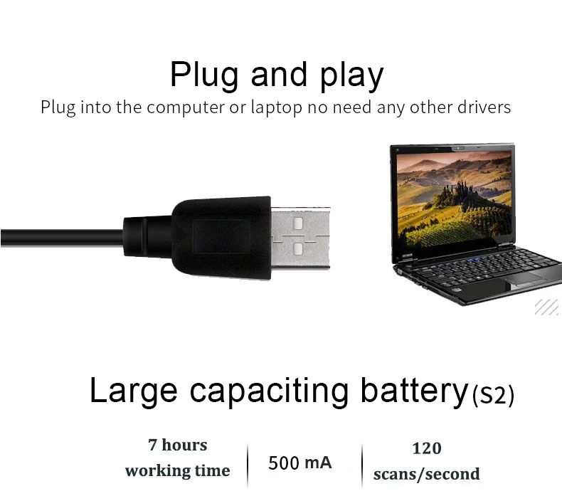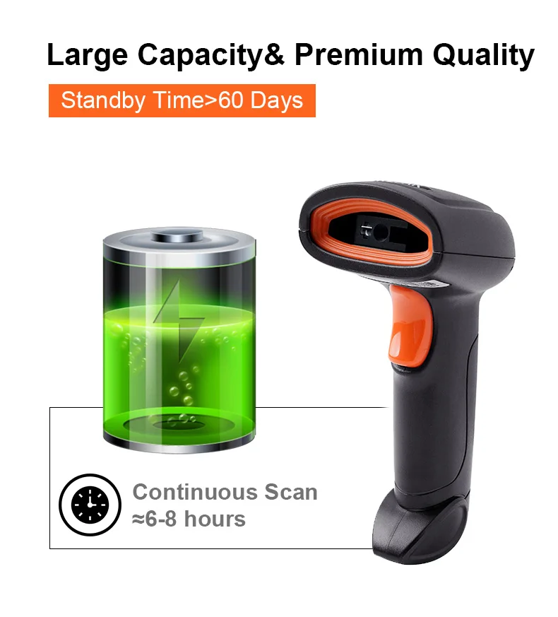 3. Аккумулятор большой емкости: встроенный литий-ионный аккумулятор емкостью 2000 мАч, а также Самая передовая технология с низким энергопотреблением процессора означает непрерывное сканирование до 100 000 раз при полной зарядке.