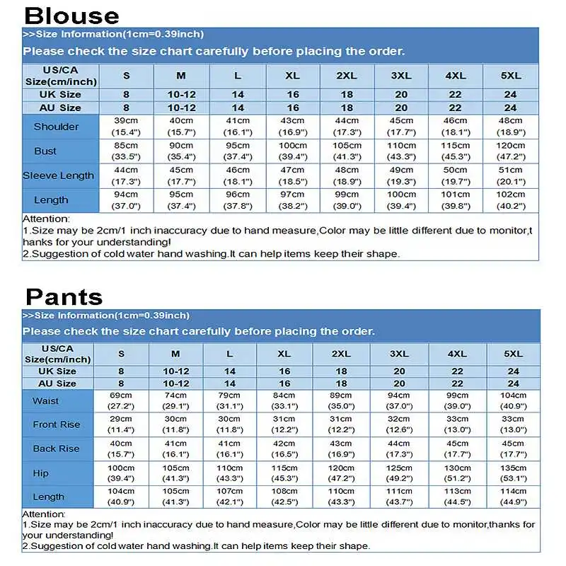 Посылка включает в себя: 1 костюм (Блузка + брюки)