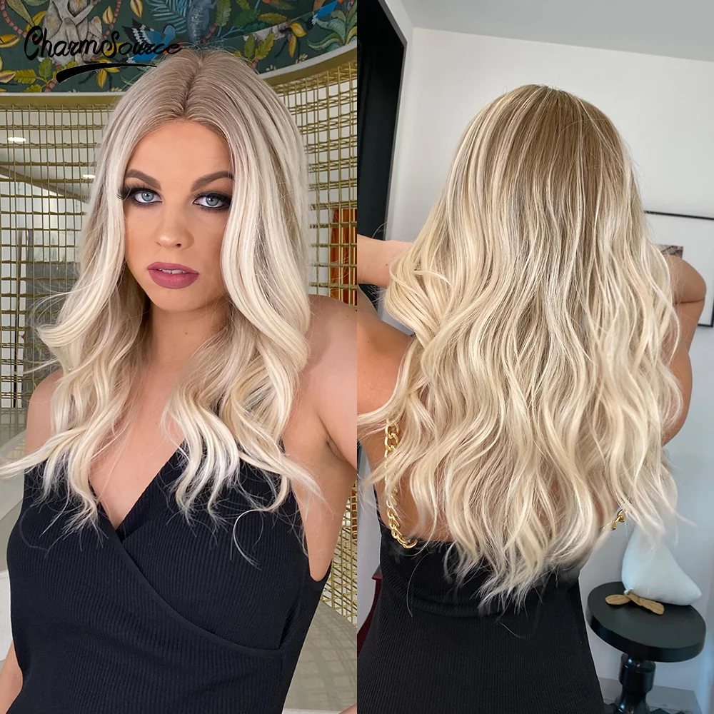 Voguebeauty блонд зеленый парик Омбре Синтетический T кружевной передний прямой