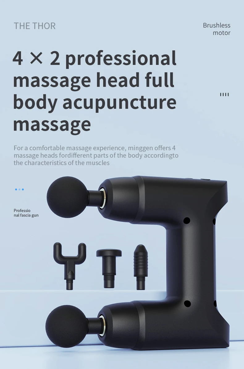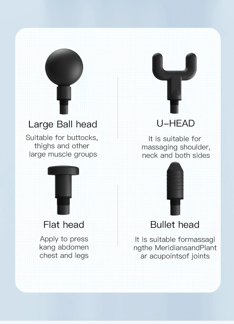 Для комфортного массажа minggen предлагает 4 массажные головки для разных частей тела в соответствии с особенностями мышц