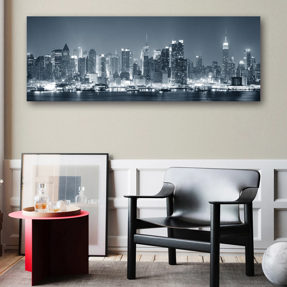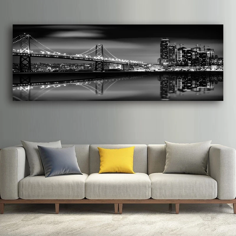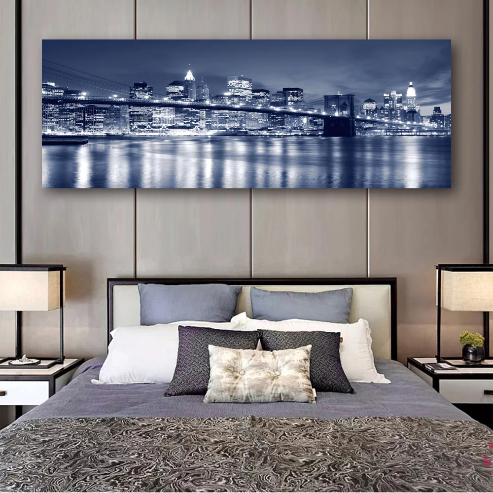 Черная и белая ночная картина из Нью-Йорка на холсте, Бруклинский мост, принты, искусство, картина для украшения гостиной