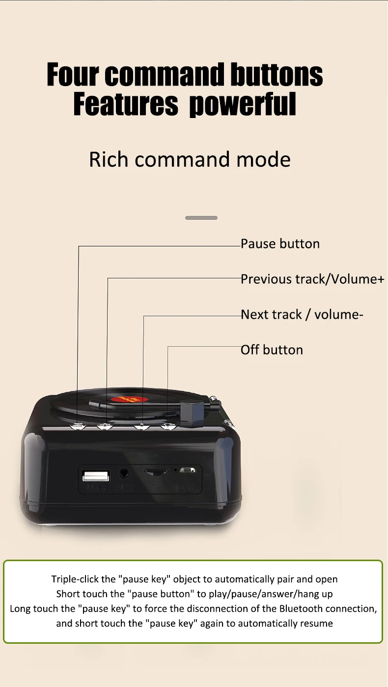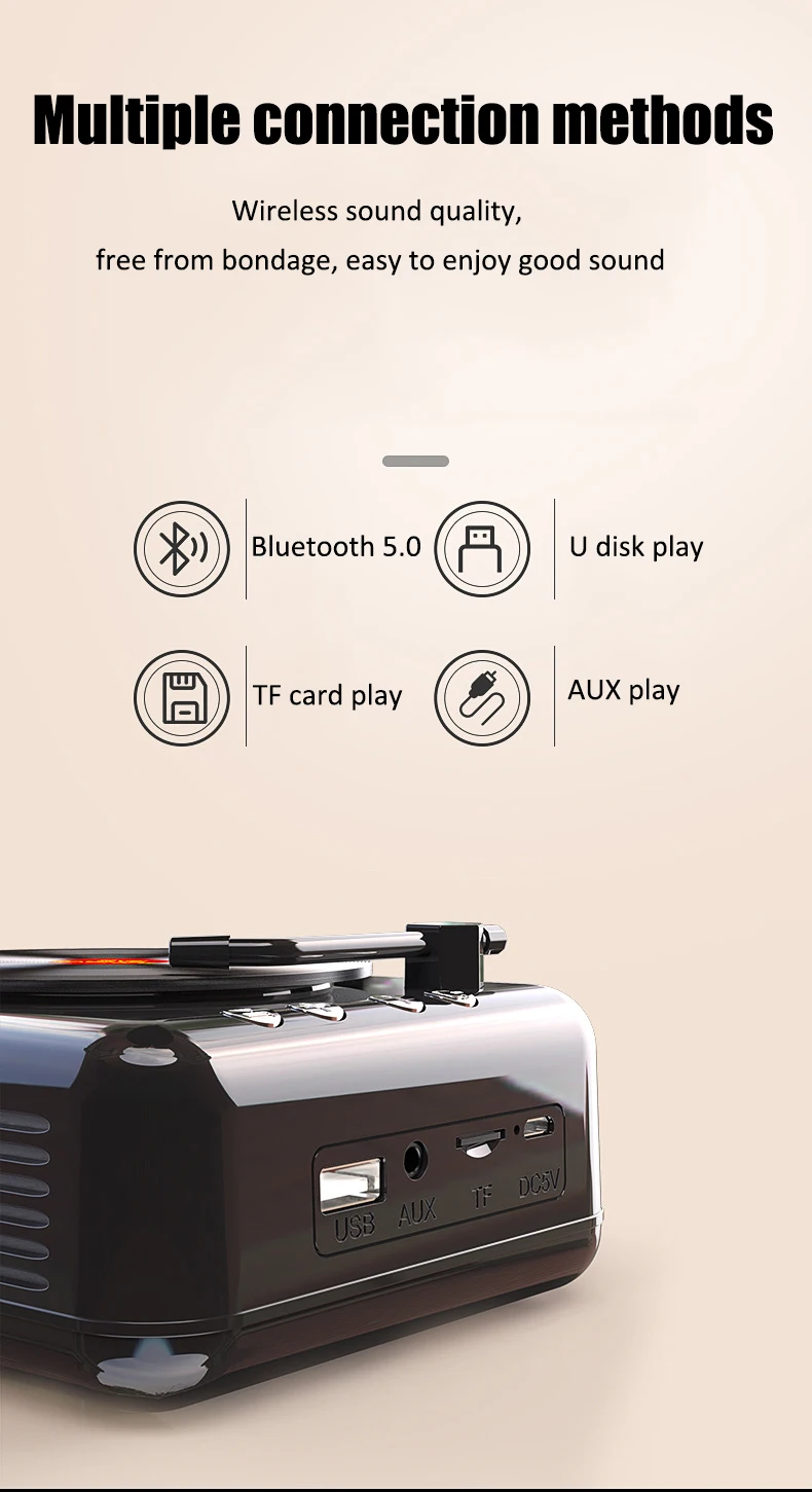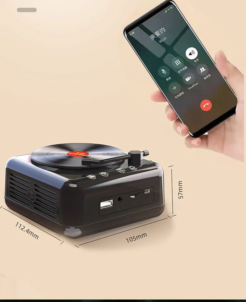 Ретро портативный fm-радио мини радио приемник Bluetooth динамик Виниловый проигрыватель с микрофоном Поддержка TWS TF карта/U диск/AUX Play