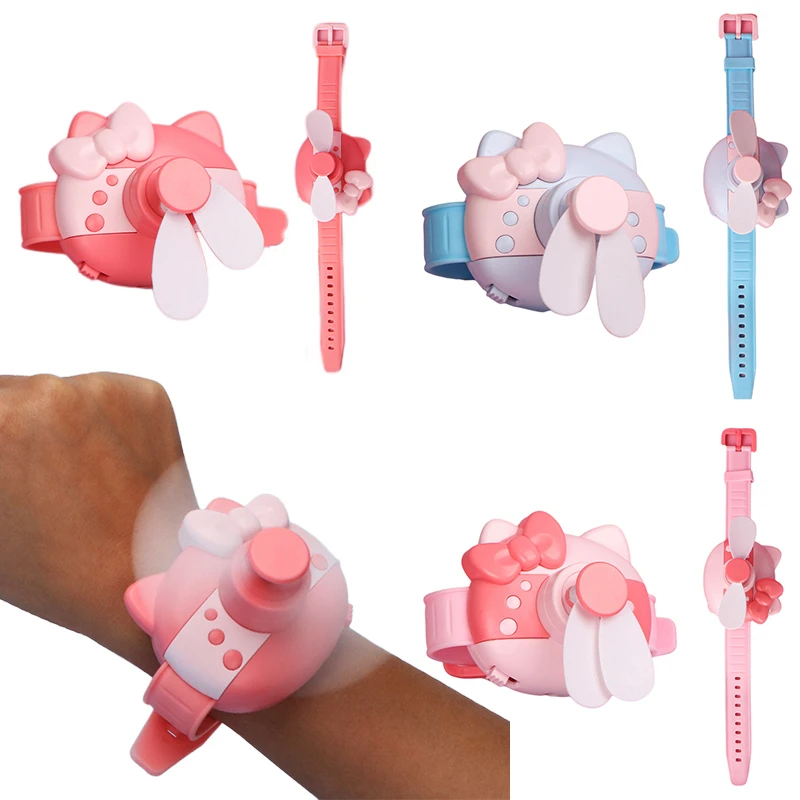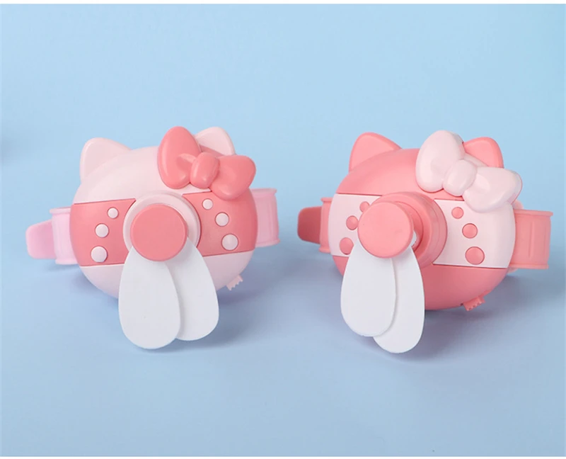 Вентилятор для часов Hello Kitty, переносная зарядка через USB, милый детский мини-вентилятор с мультипликационным принтомМатериал: силикон