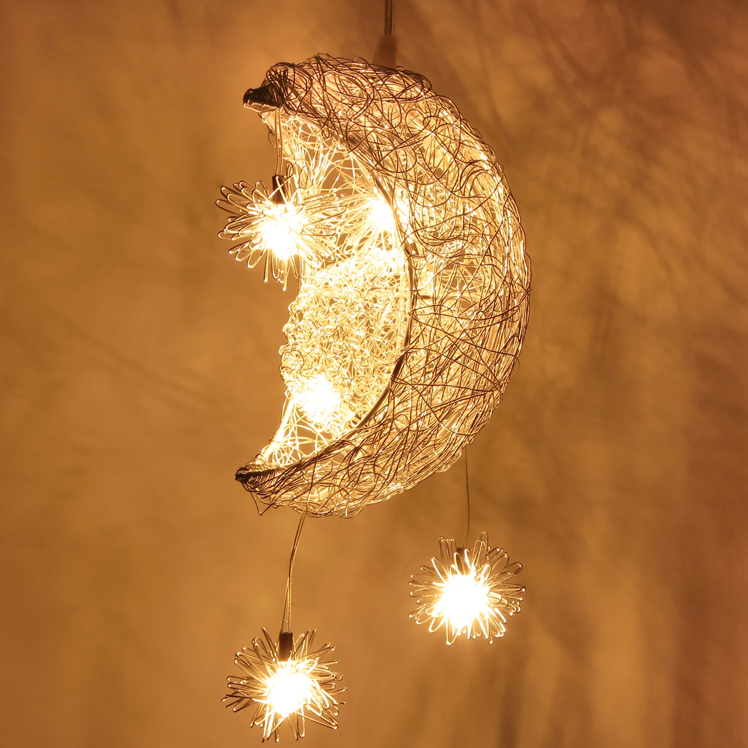 Современный подвесной светильник с Луной и звездой изготовлен из железа. Элегантный дизайн и высококачественный материал.